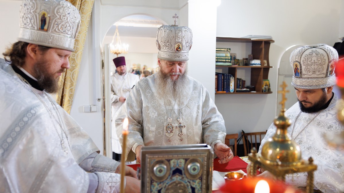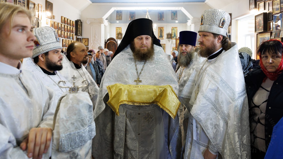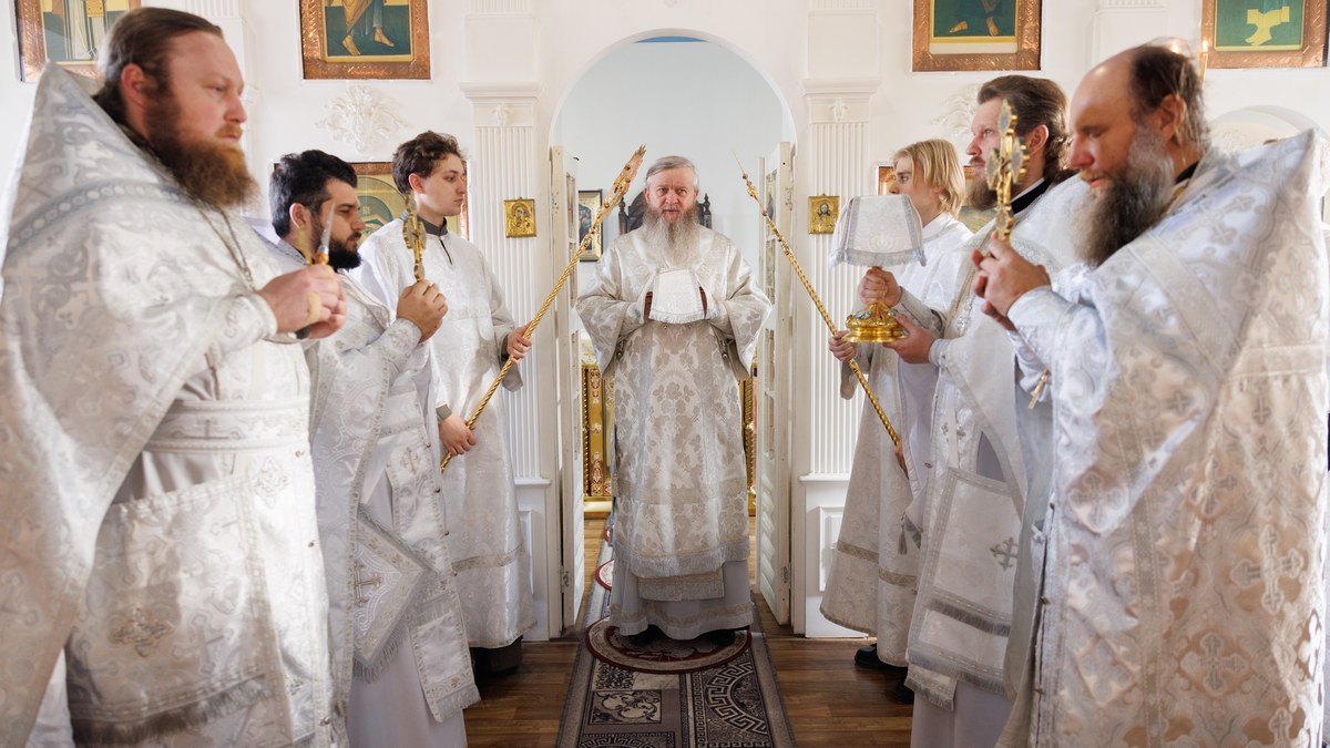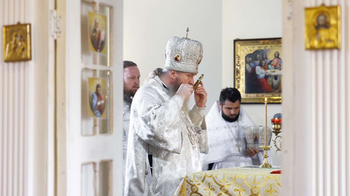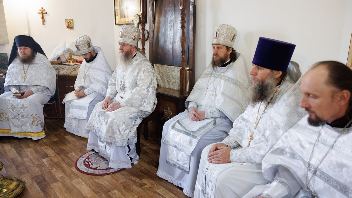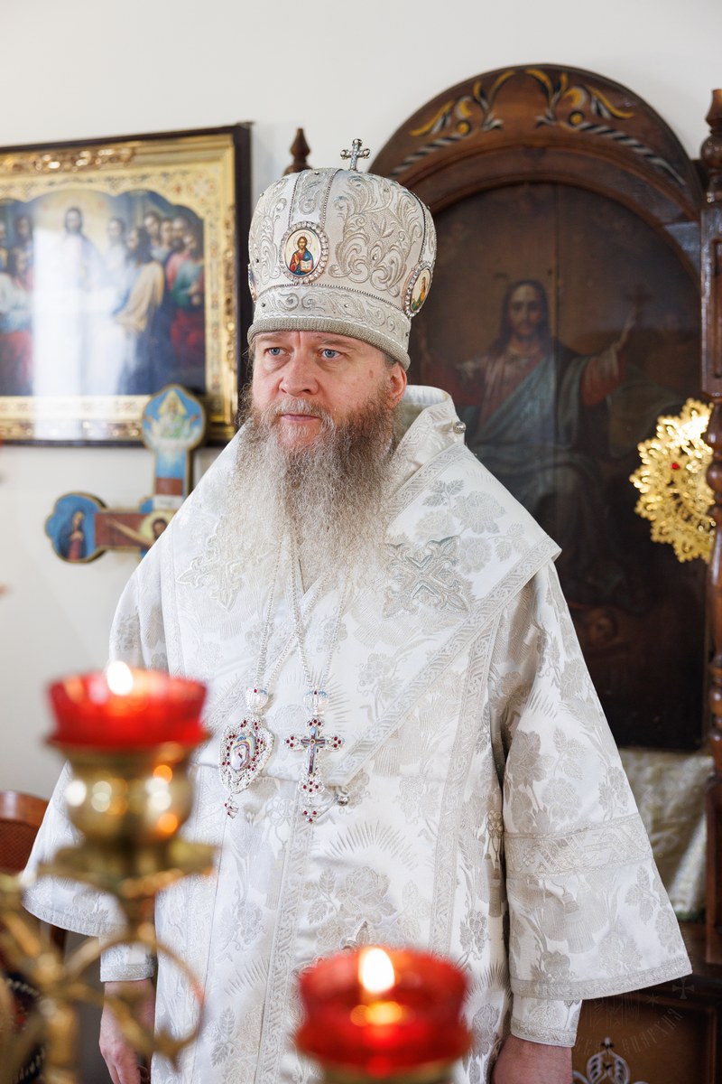 За Литургией Его Высокопреосвященству сослужил секретарь Епархии прот. Андрей Зозуля, и. о благочинного Беловодского округа прот. Алексий Храбров, настоятель храма священноинок Григорий (Кологривый), а также духовенство благочиния.