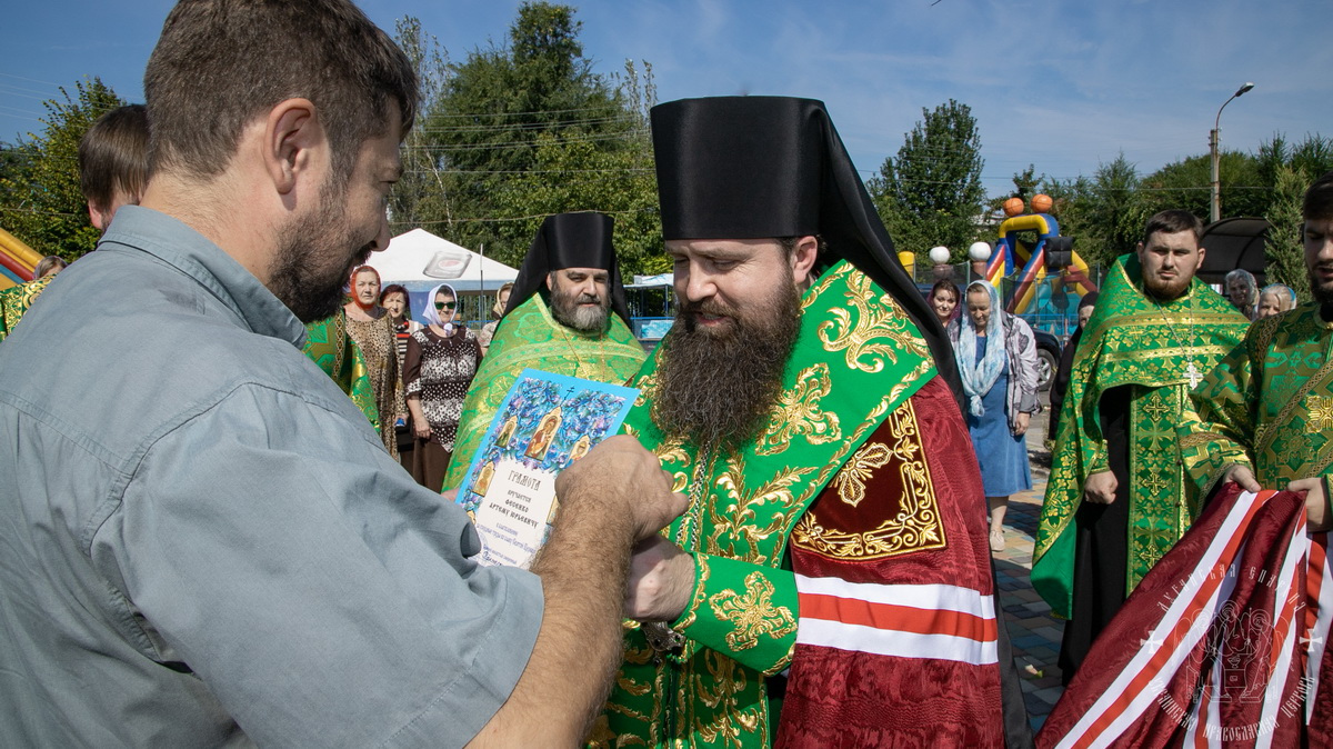 13 сентября, по благословению Высокопреосвященнейшего Пантелеимона, митрополита Луганского и Алчевского, Преосвященнейший Павел, епископ Беловодский, совершил освящение памятного знака святых благоверных князя Петра и княгини Февронии на церковной площади у храма Киево-Печерской иконы Божией Матери.