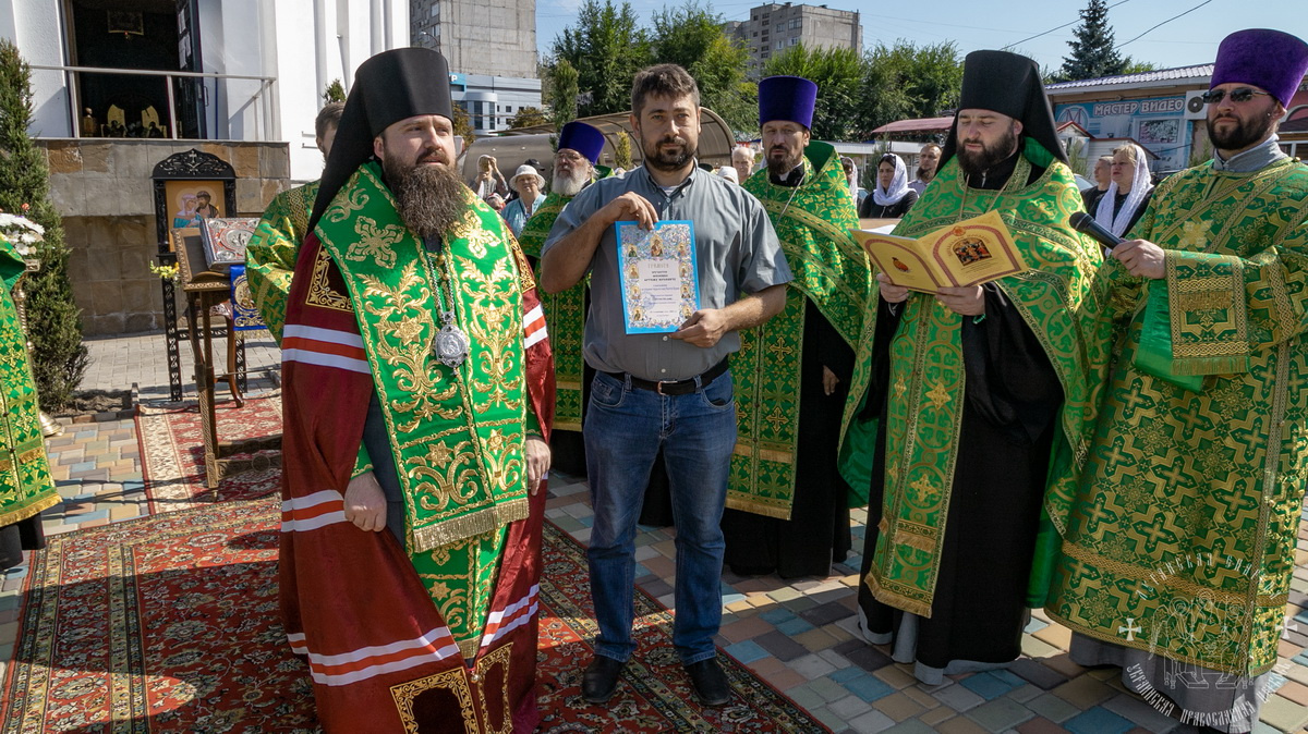 В завершение, владыка вручил благодарственные архиерейские грамоты скульпторам и мастерам, потрудившимся над созданием памятника.