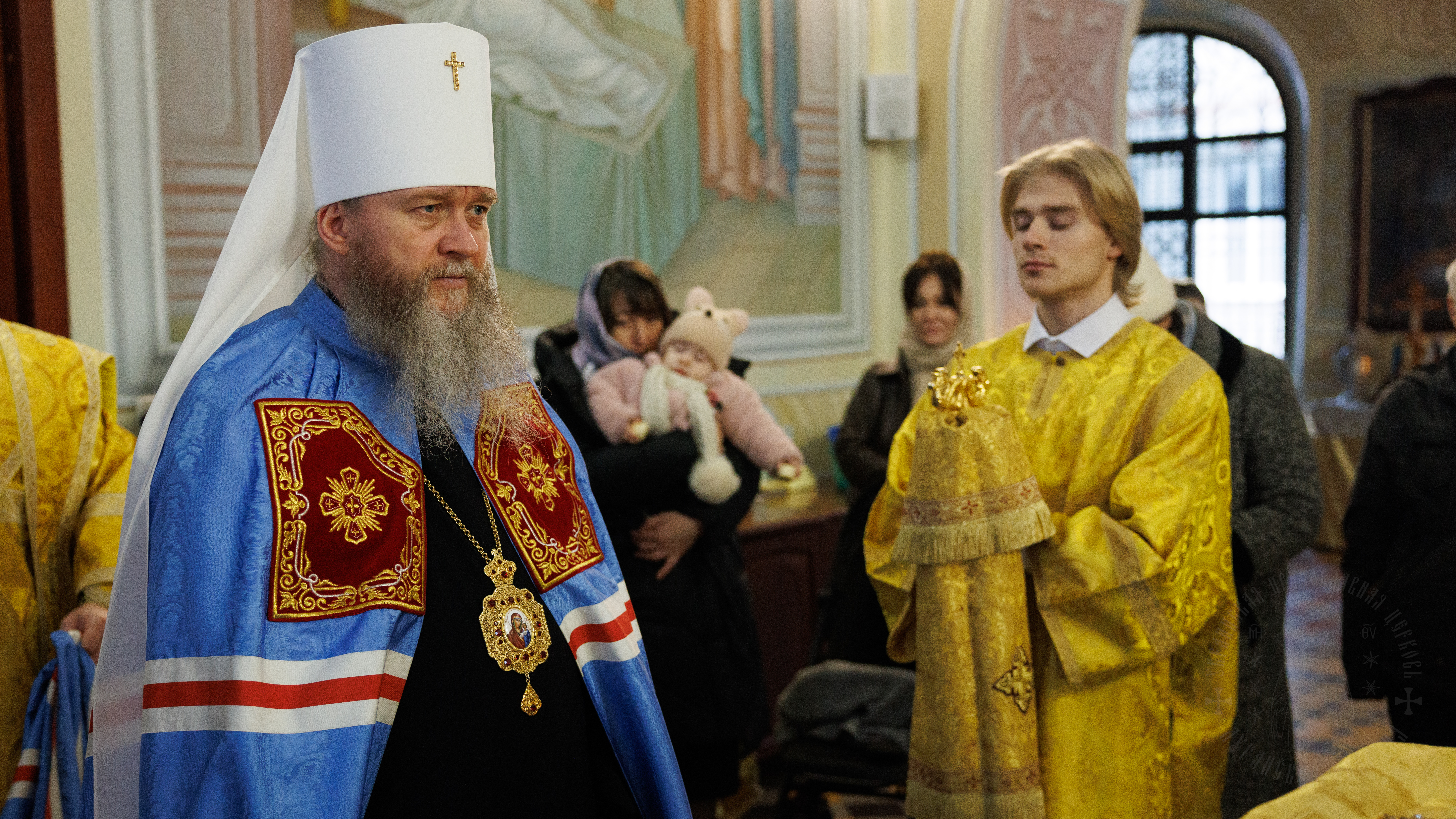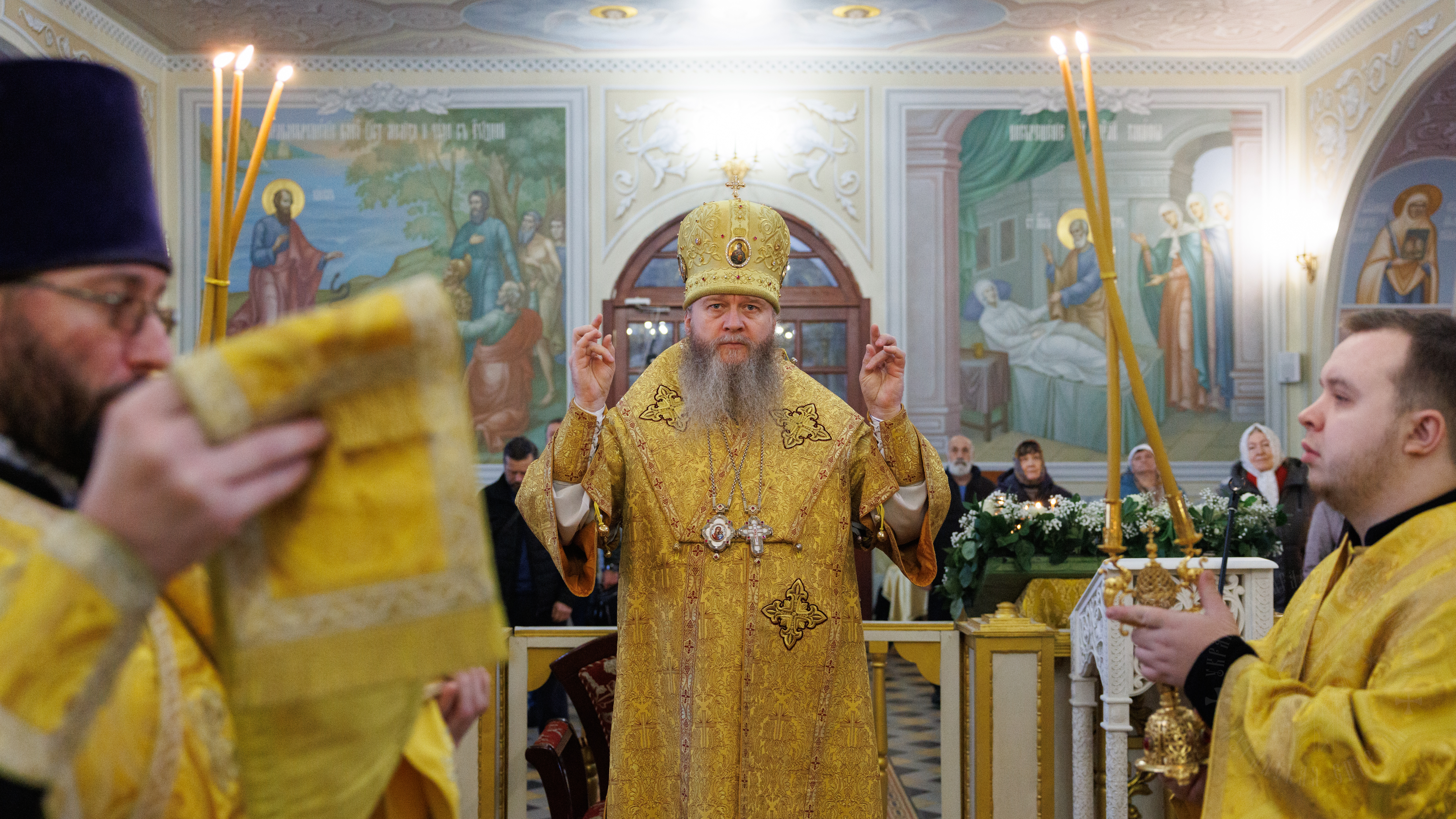 После сугубой ектении владыка вознес молитву о мире на Святой Земле, молитву о Святой Руси, и молитву об исцелении болящих.