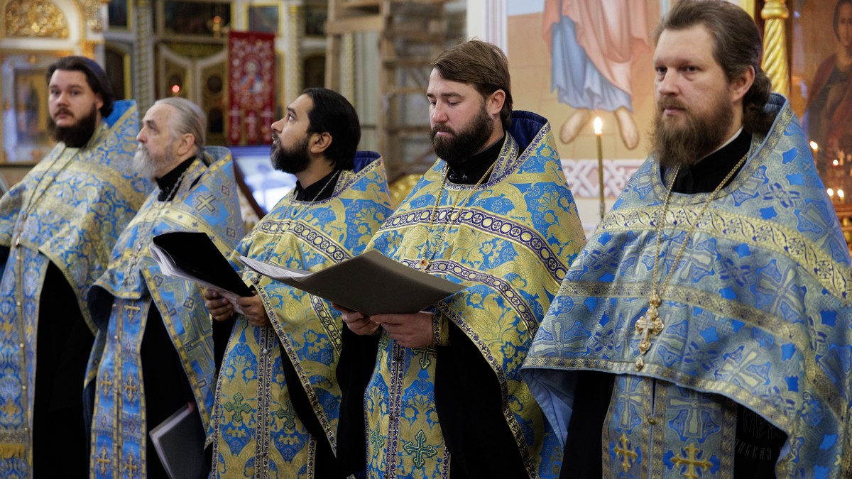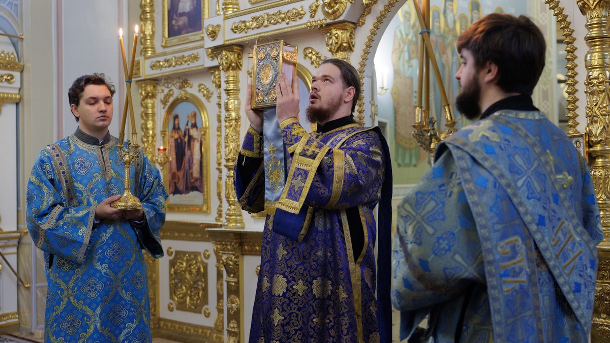 Затем, седмичный священник совершил Божественную литургию в Успенском приделе кафедрального собора.