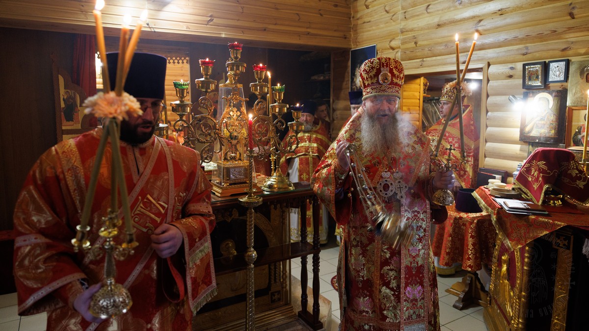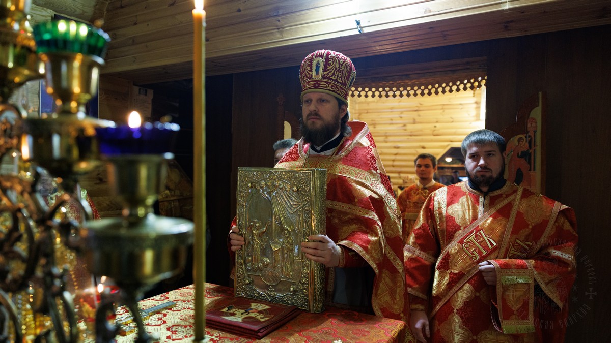 После сугубой ектении владыка вознес молитву о мире на Святой Земле, молитву о святой Руси, и молитву об исцелении болящих.