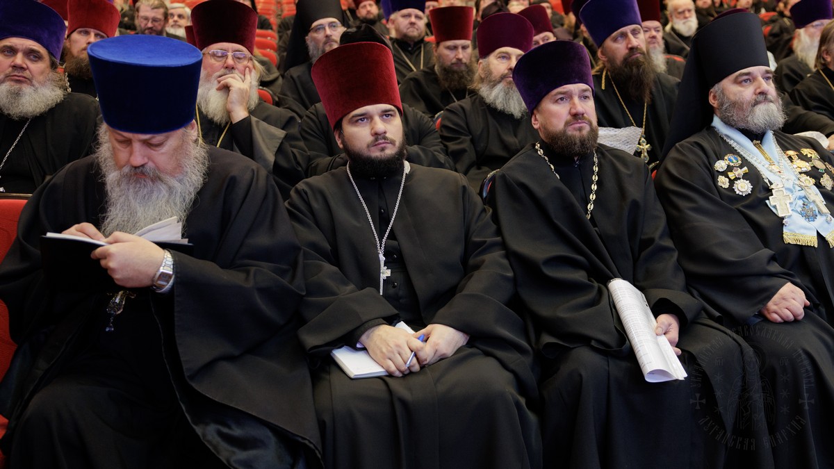 В собрании приняли участие священнослужители, игумены и игумении монастырей Луганской епархии.