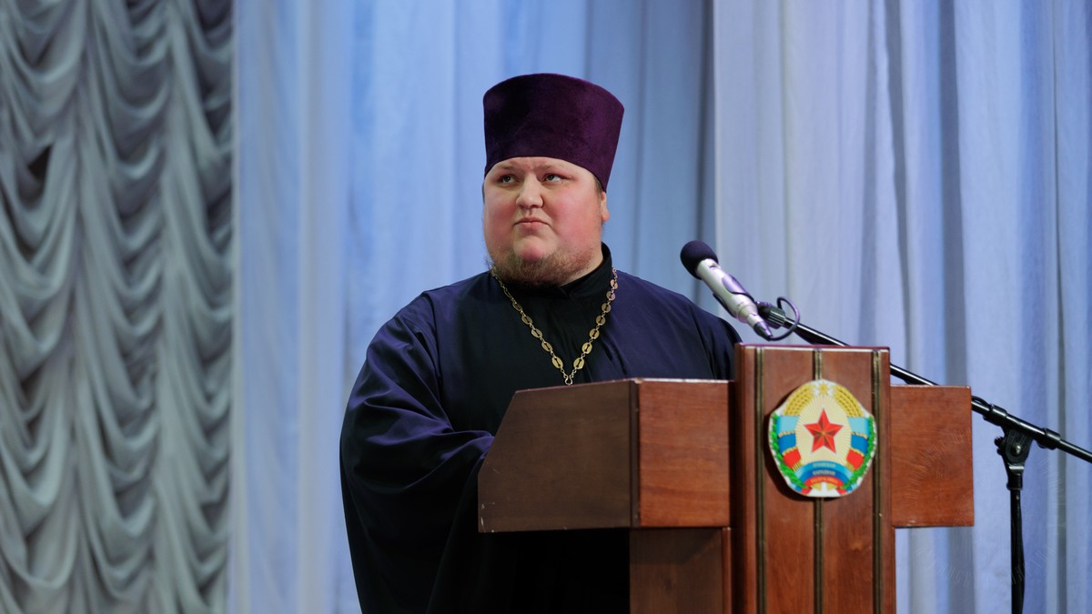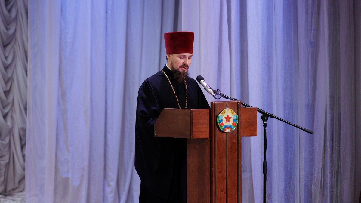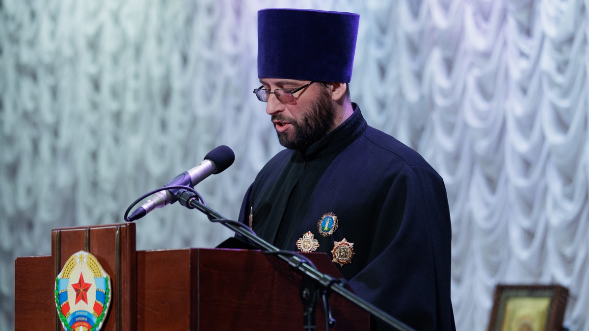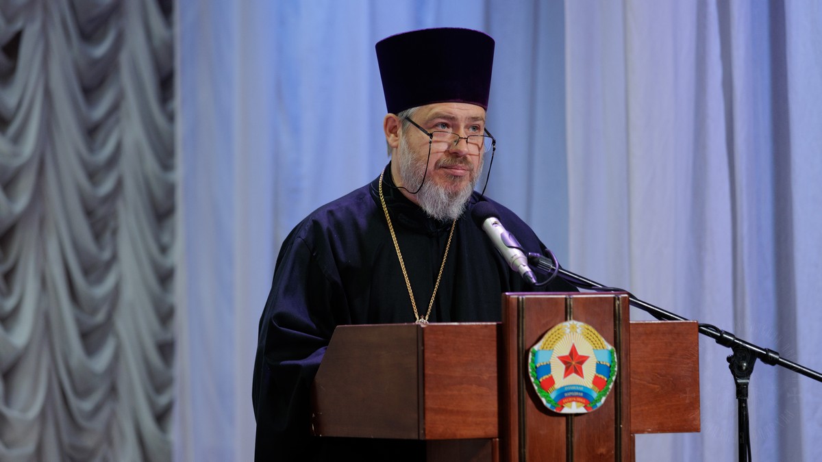 С обращением о духовно-нравственном облике священнослужителя к участникам собрания обратился духовник Луганской Епархии протоиерей Владимир Соловей.