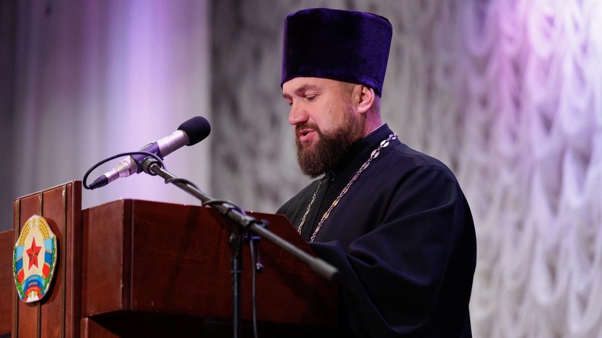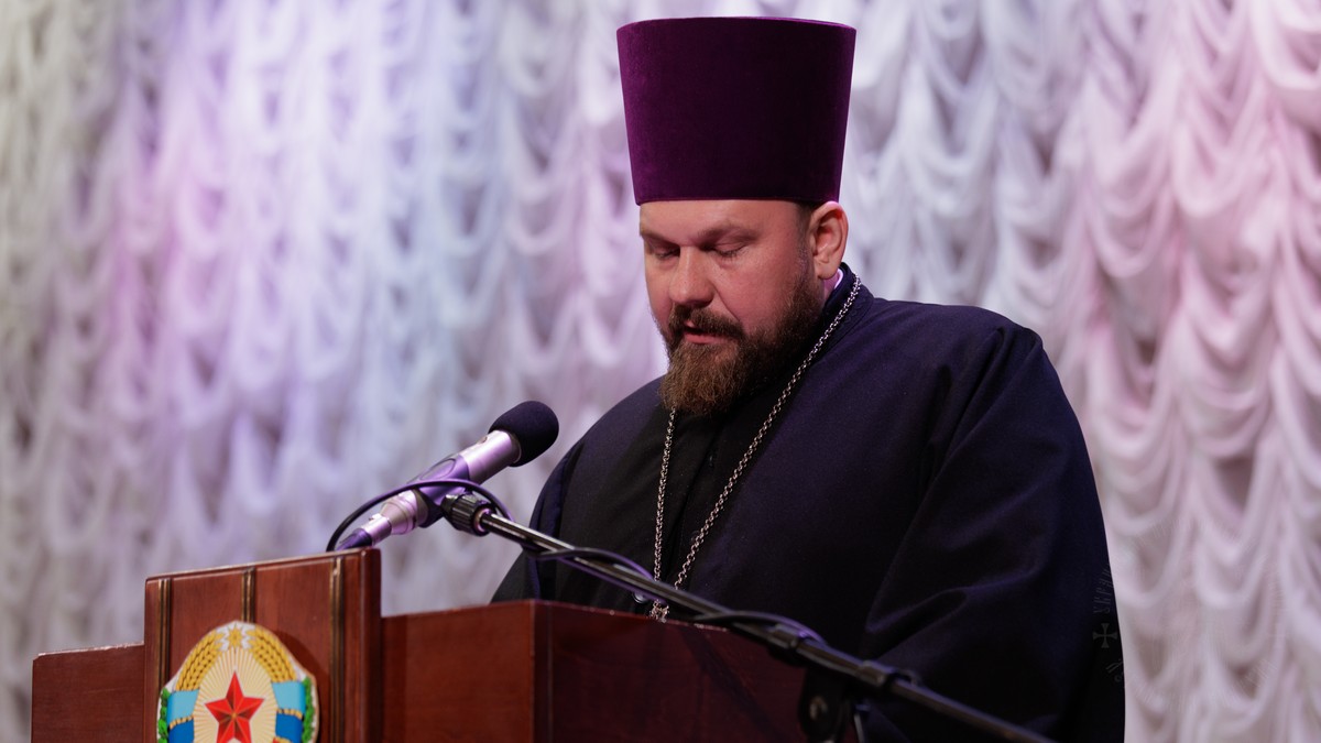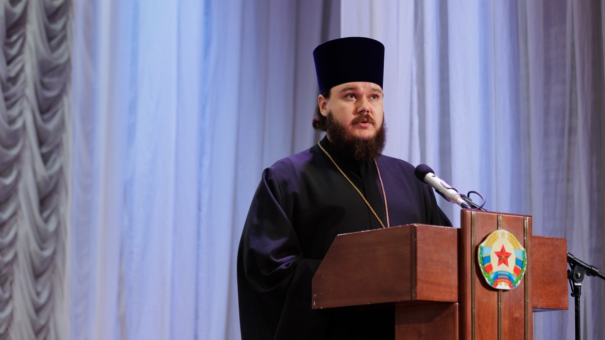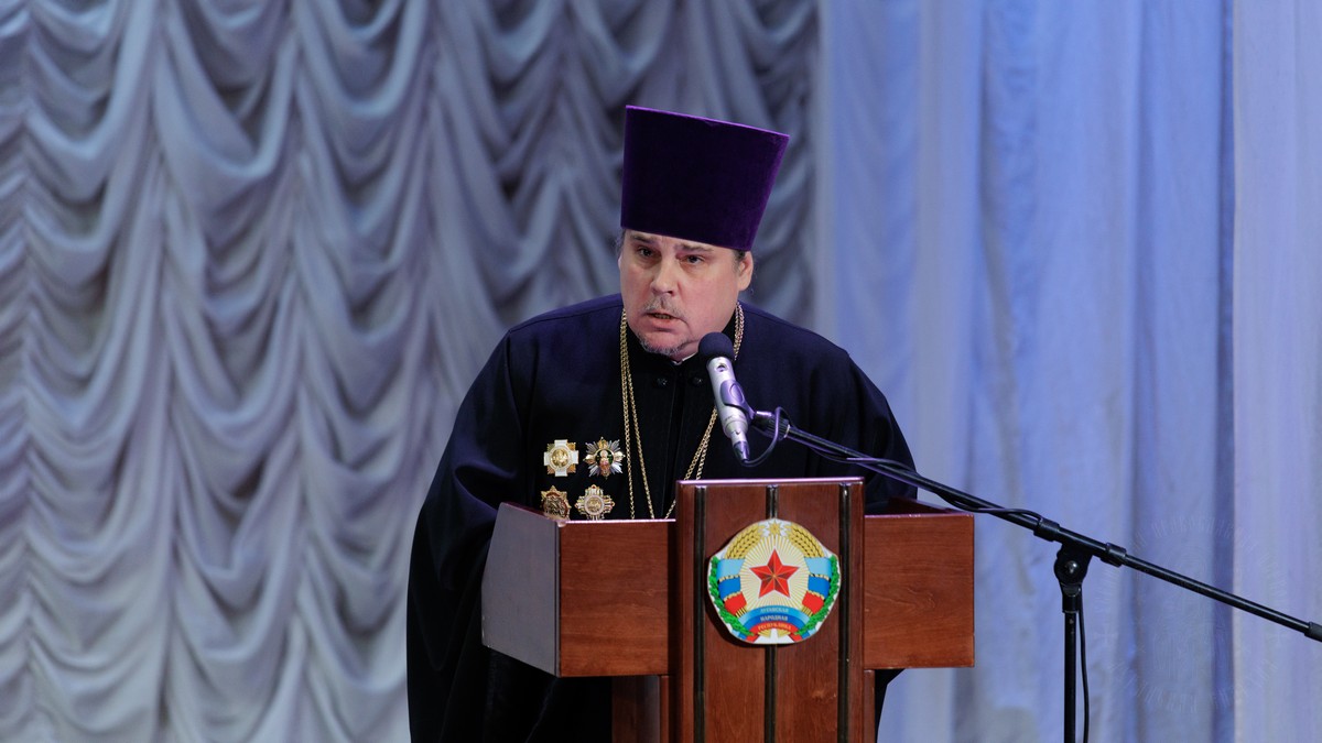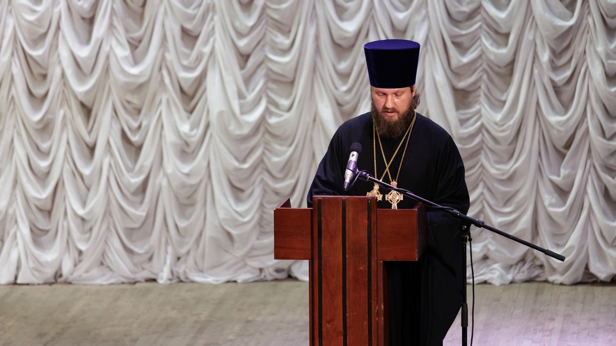 С обращением о духовно-нравственном облике священнослужителя к участникам собрания обратился духовник Луганской Епархии протоиерей Владимир Соловей.
