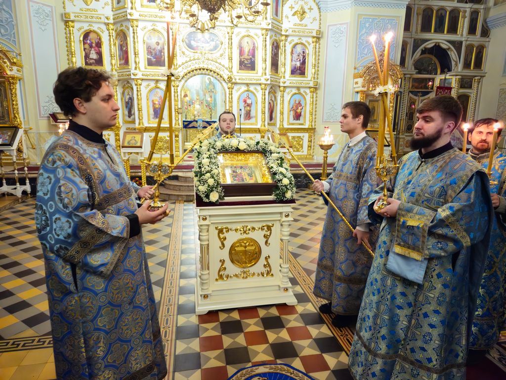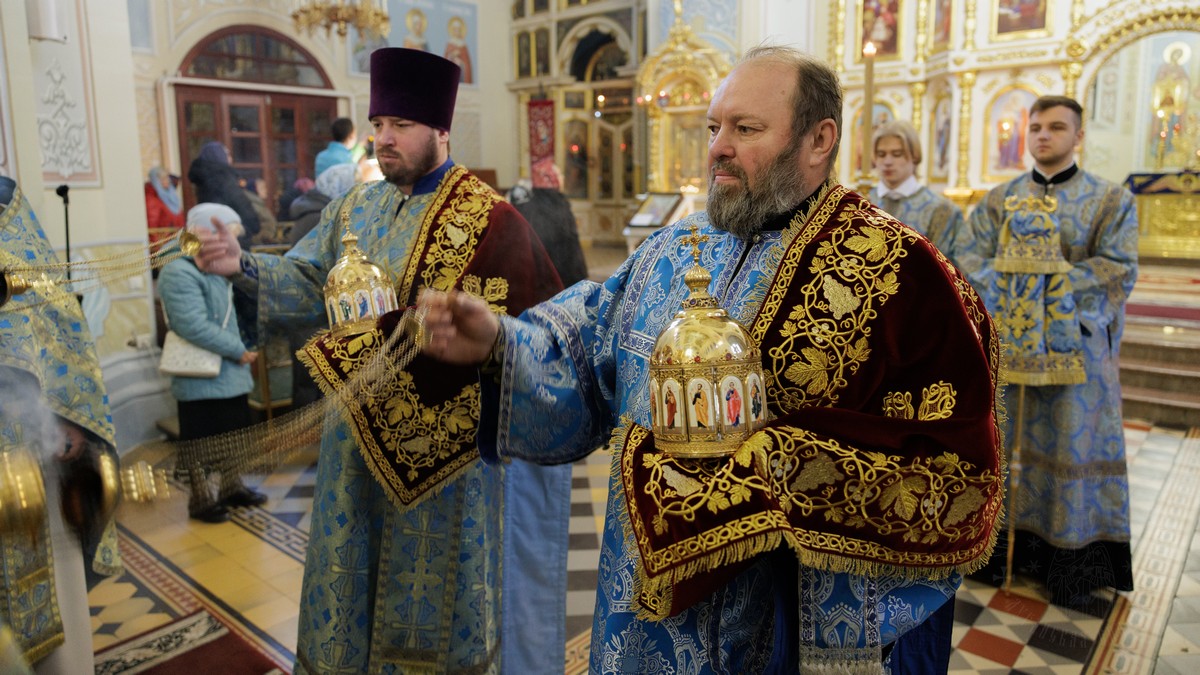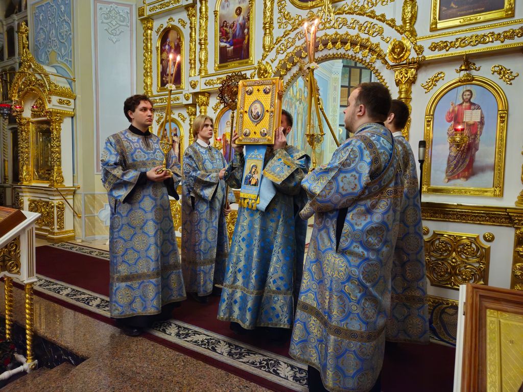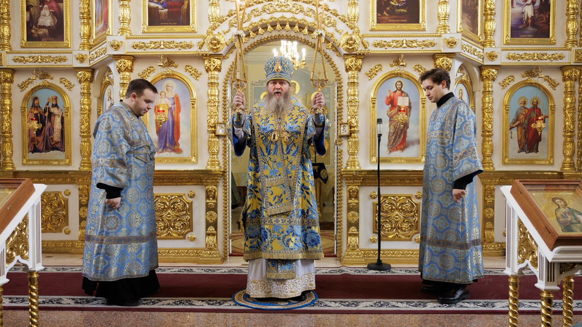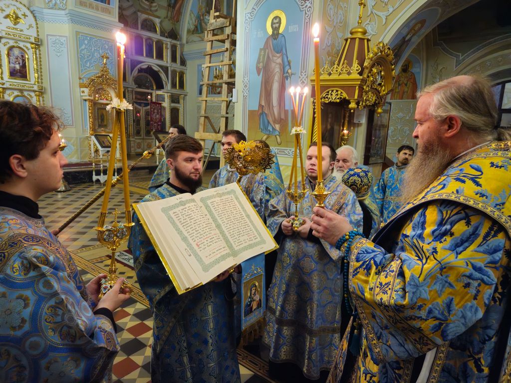 Накануне праздника, архипастырь совершил в соборе Всенощное бдение.