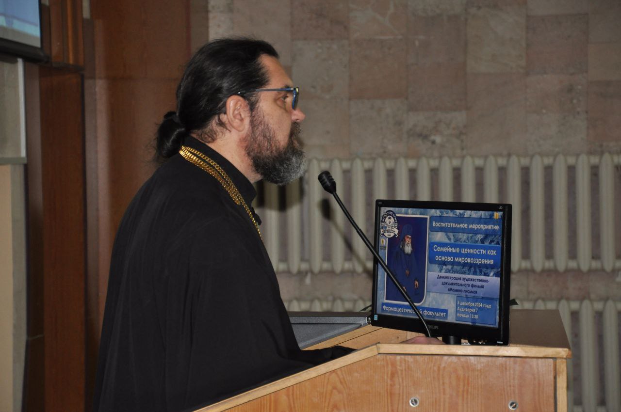Перед началом просмотра фильма с вступительным словом выступили: заместитель ректора медуниверситета по учебной работе Бибик В. В., настоятель храма Святителя Луки Крымского при медуниверситете прот. Андрей Андреев.