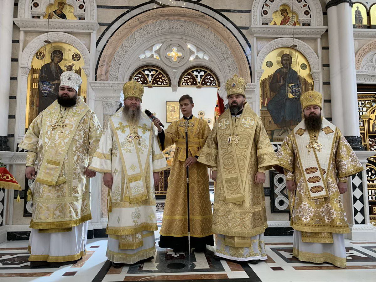От Луганской епархии, за богослужением архипастырям сослужили: секретарь Луганской епархии архим. Макарий (Любавцев), протодиакон Тарасий Любавцев и диакон Сергий Шергей.
