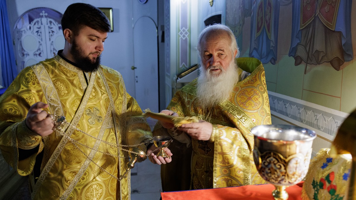 После сугубой ектении владыка вознес молитву о мире на Святой Земле, молитву о Святой Руси, и молитву об исцелении болящих.