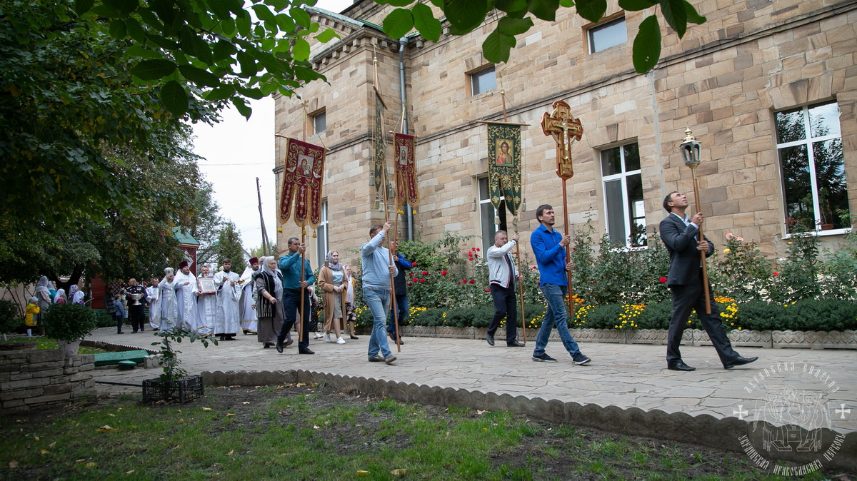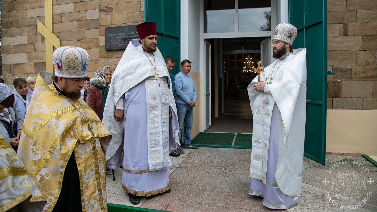 По окончании Литургии, был совершен крестный ход вокруг храма, после которого архим. Макарий прочел молитву Архистратигу Божию Михаилу и окропил богомольцев святой водой.