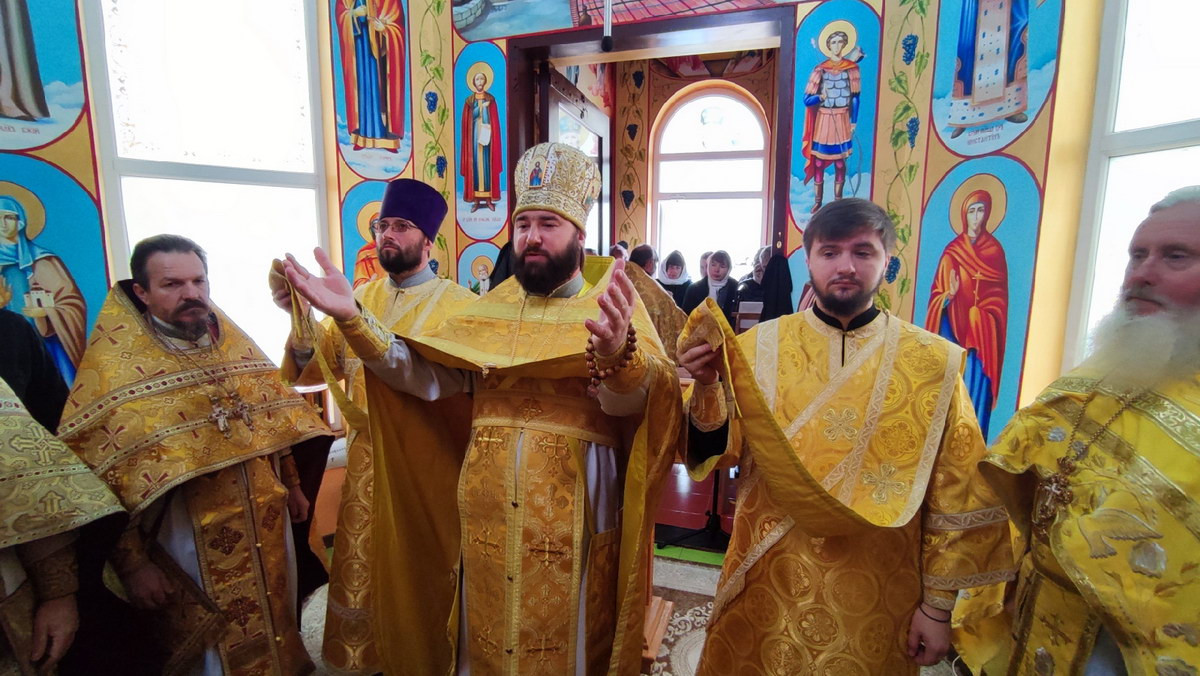 За Литургией ему сослужил секретарь Ровеньковской епархии прот. Григорий Устименко, благочинный Алчевского округа прот. Александр Устименко, благочинный Михайловского округа Ровеньковской епархии прот. Александр Притула, а также духовенство Алчевского благочиния.