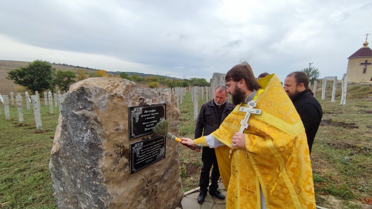 В мае текущего года, приснопоминаемый владыка Митрофан принимал участие в высадке нового сорта винограда «Пино Нуар», в связи с этим событием была освящена памятная таблица.