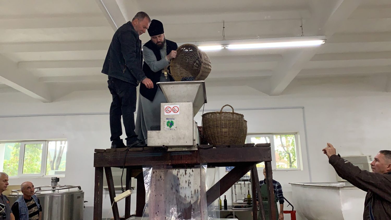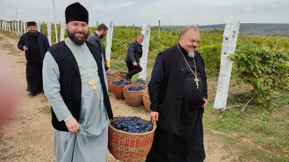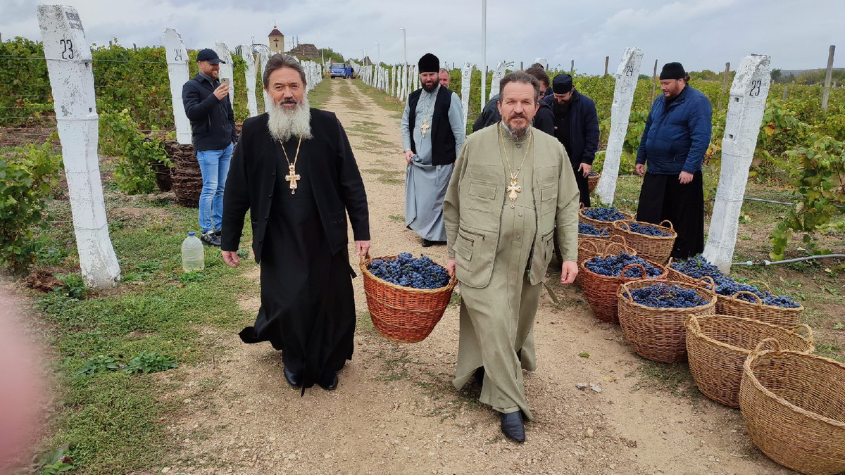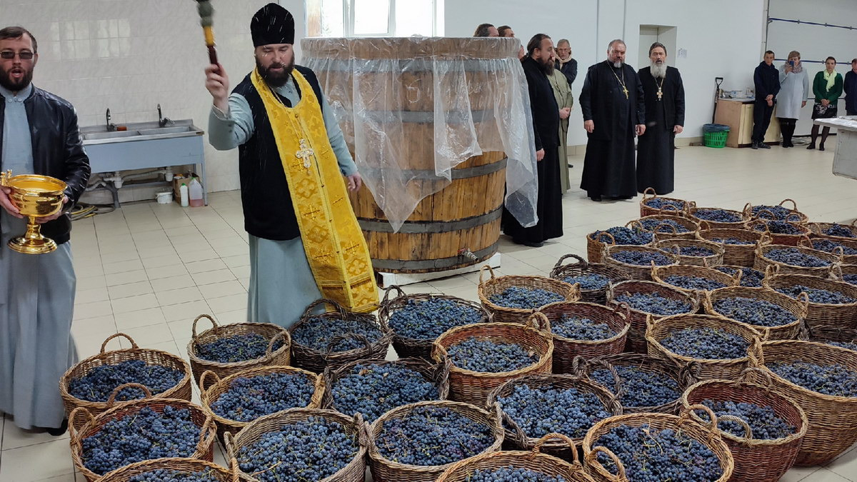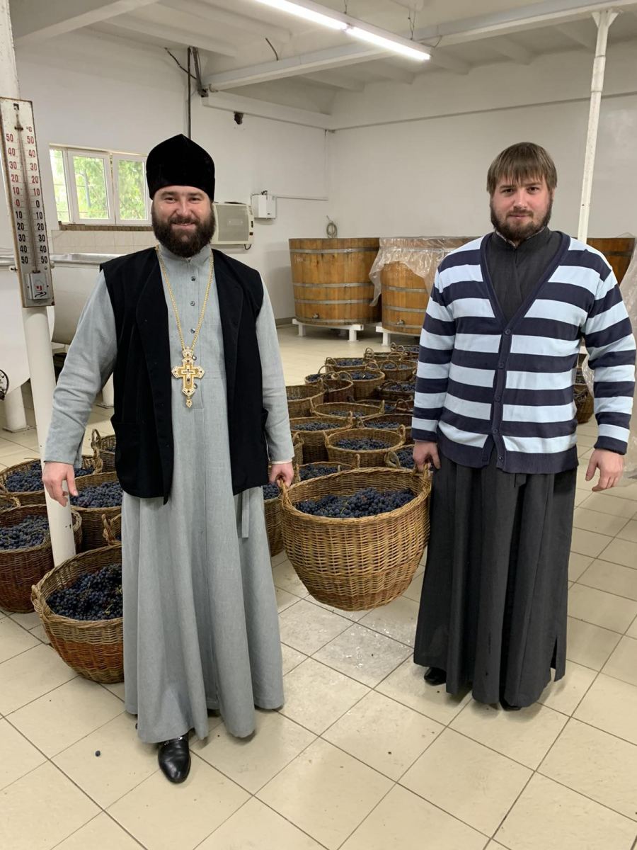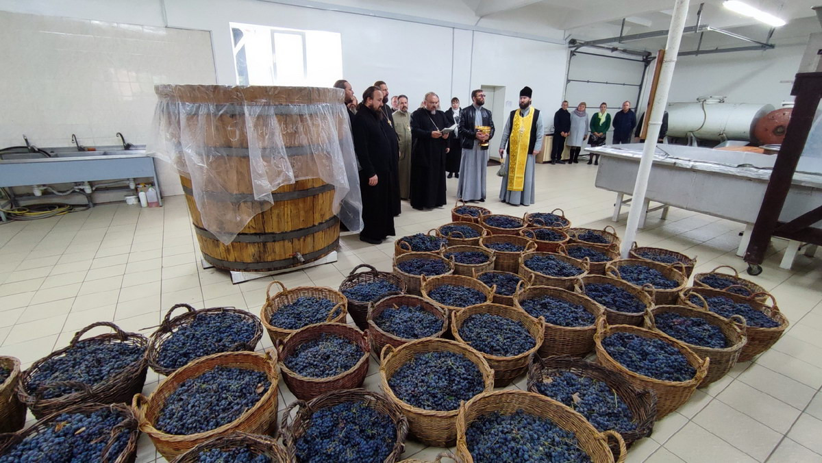 По окончании Литургии священнослужители совершили молебное пение перед началом уборки нового урожая винограда и поучаствовали в процессе изготовления вина – «Кагор», который используется храмах епархии за богослужением в Таинстве Евхаристии.