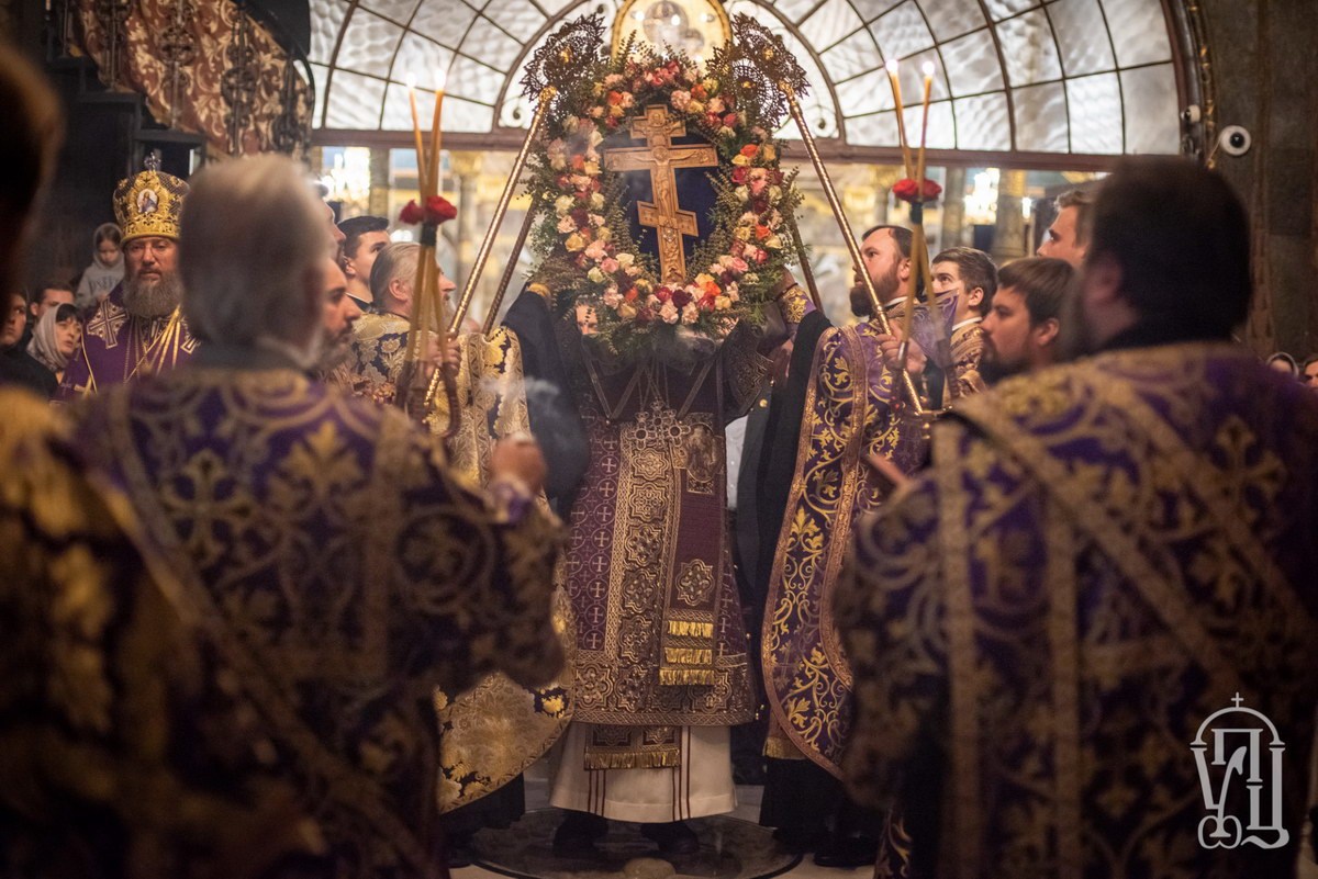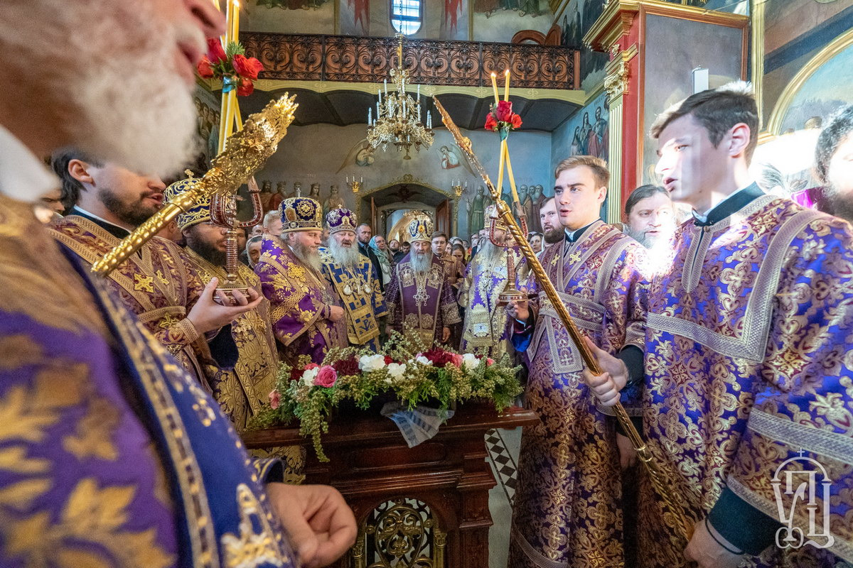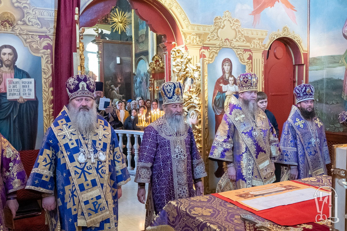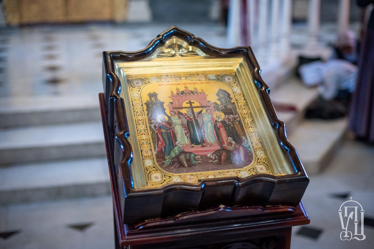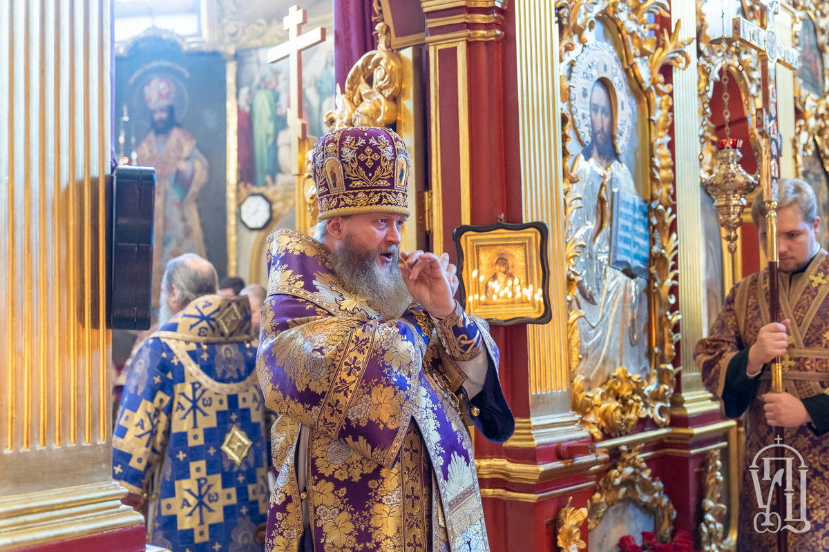 В конце богослужения совершили чин славления. Священнослужители во главе с Блаженнейшим владыкой поклонились Честному Кресту. Архипастырь поздравил верующих с праздником и благословил всех.