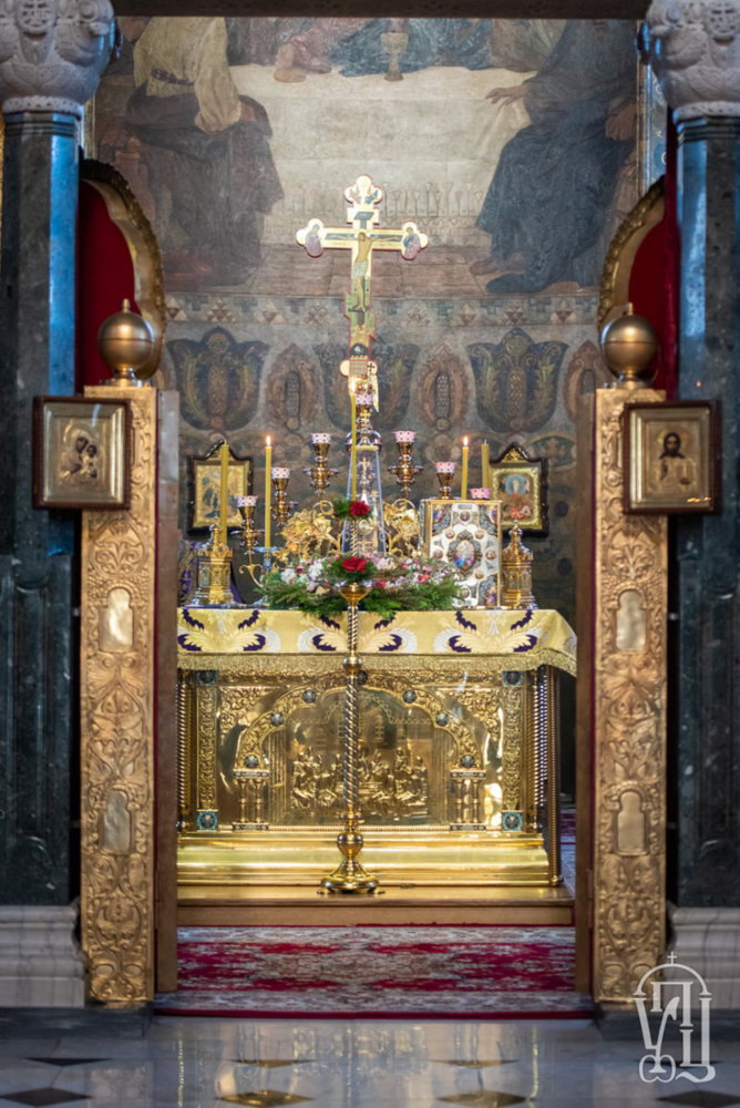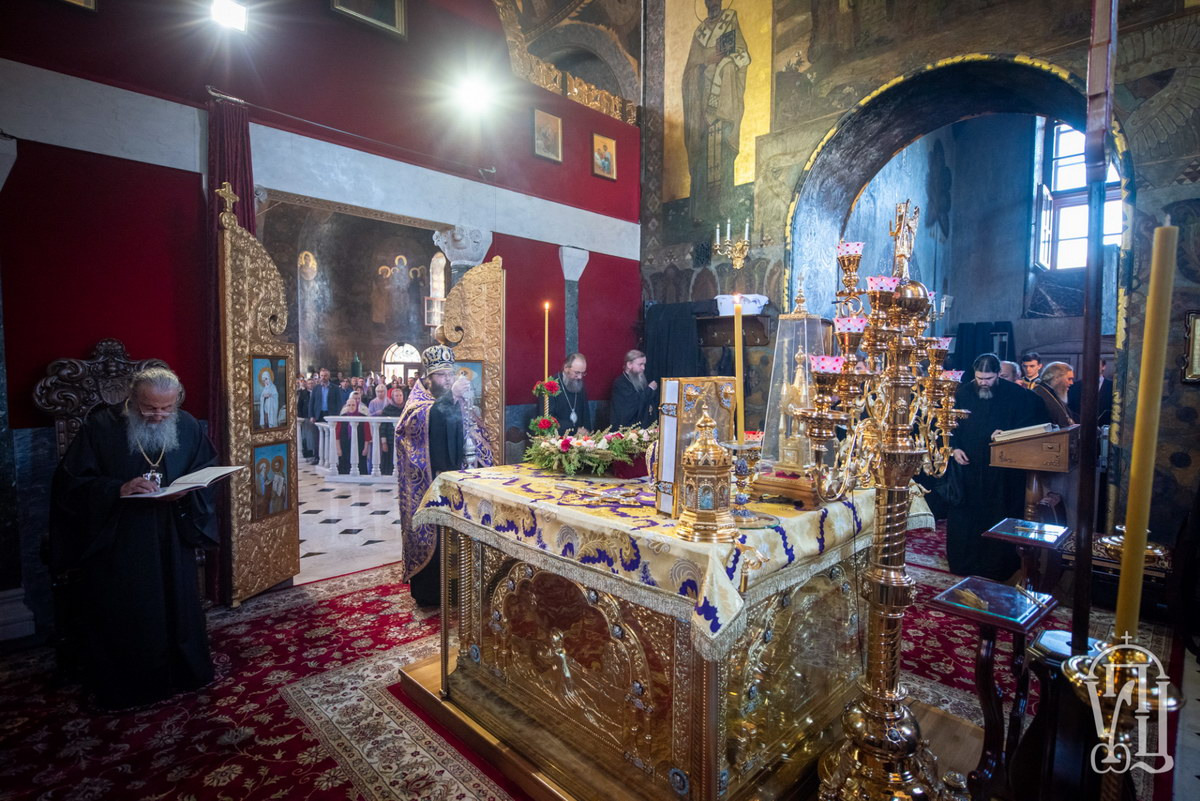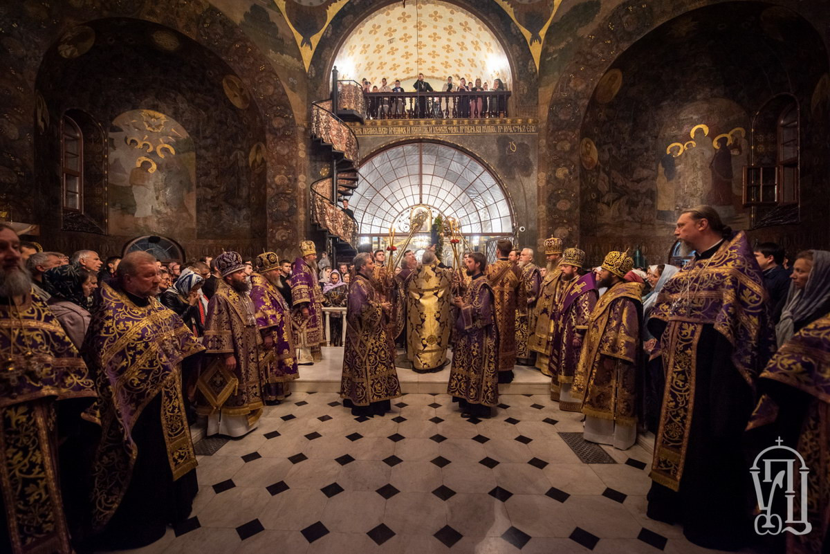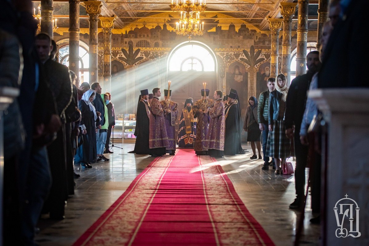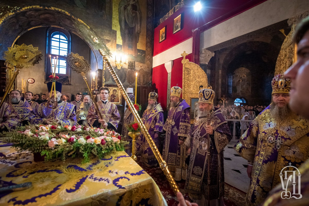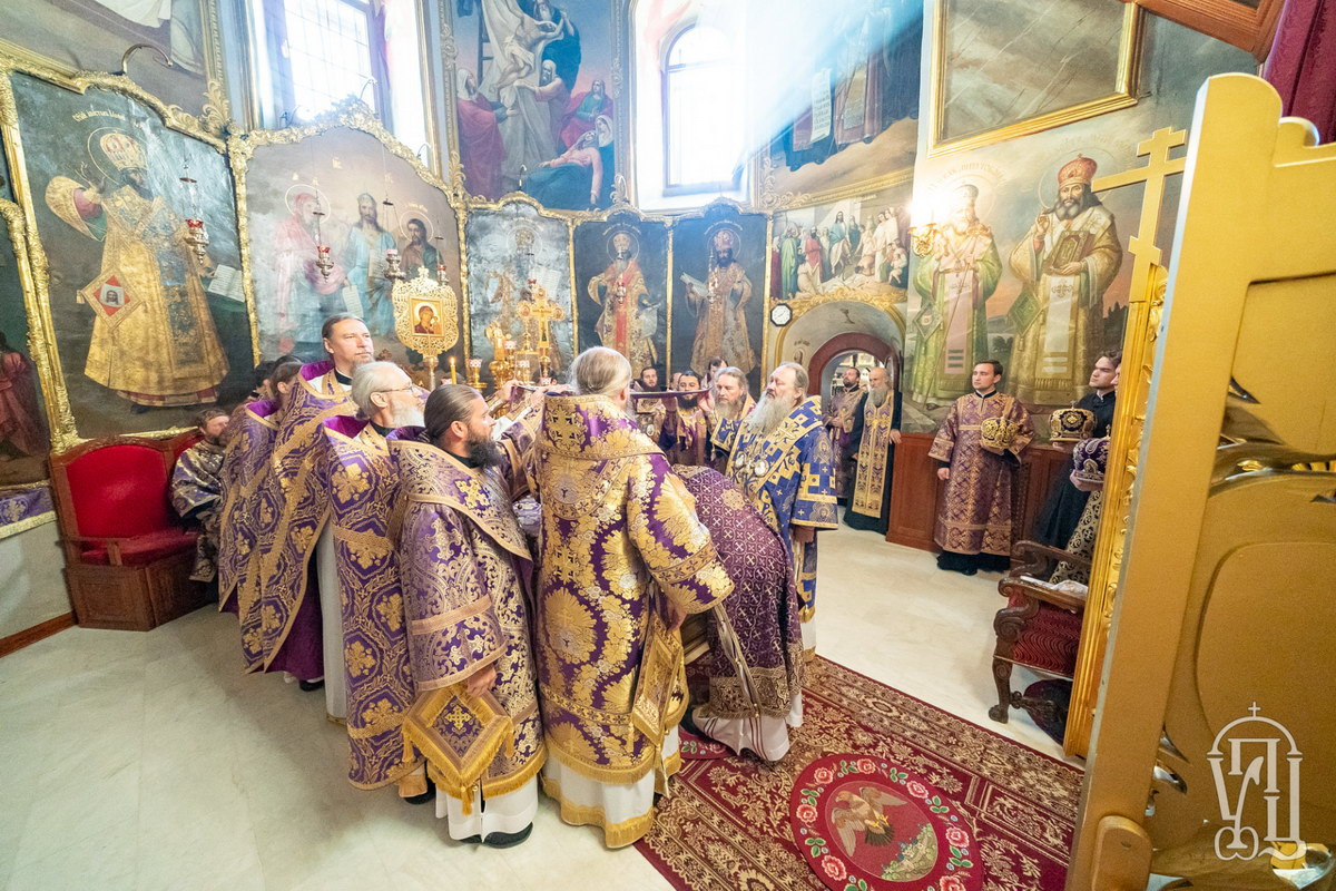В конце богослужения совершили чин славления. Священнослужители во главе с Блаженнейшим владыкой поклонились Честному Кресту. Архипастырь поздравил верующих с праздником и благословил всех.