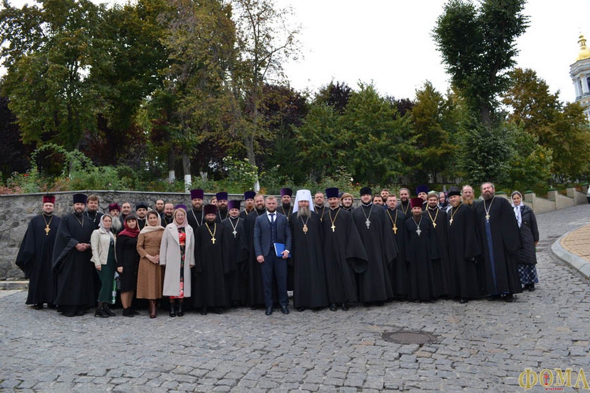 Более 50-ти клириков УПЦ с разных концов страны и студенты Киевской духовной академии и семинарии собрались сегодня на Х Всеукраинскую конференцию руководителей епархиальных отделов УПЦ по делам семьи. Форум прошёл в актовом зале Киево-Печерской Лавры.