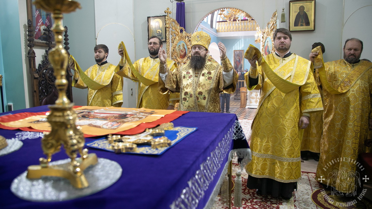 После сугубой ектении владыка вознес молитву о водворении мира в нашем Отечестве и молитву «во время распространения вредоносного поветрия».