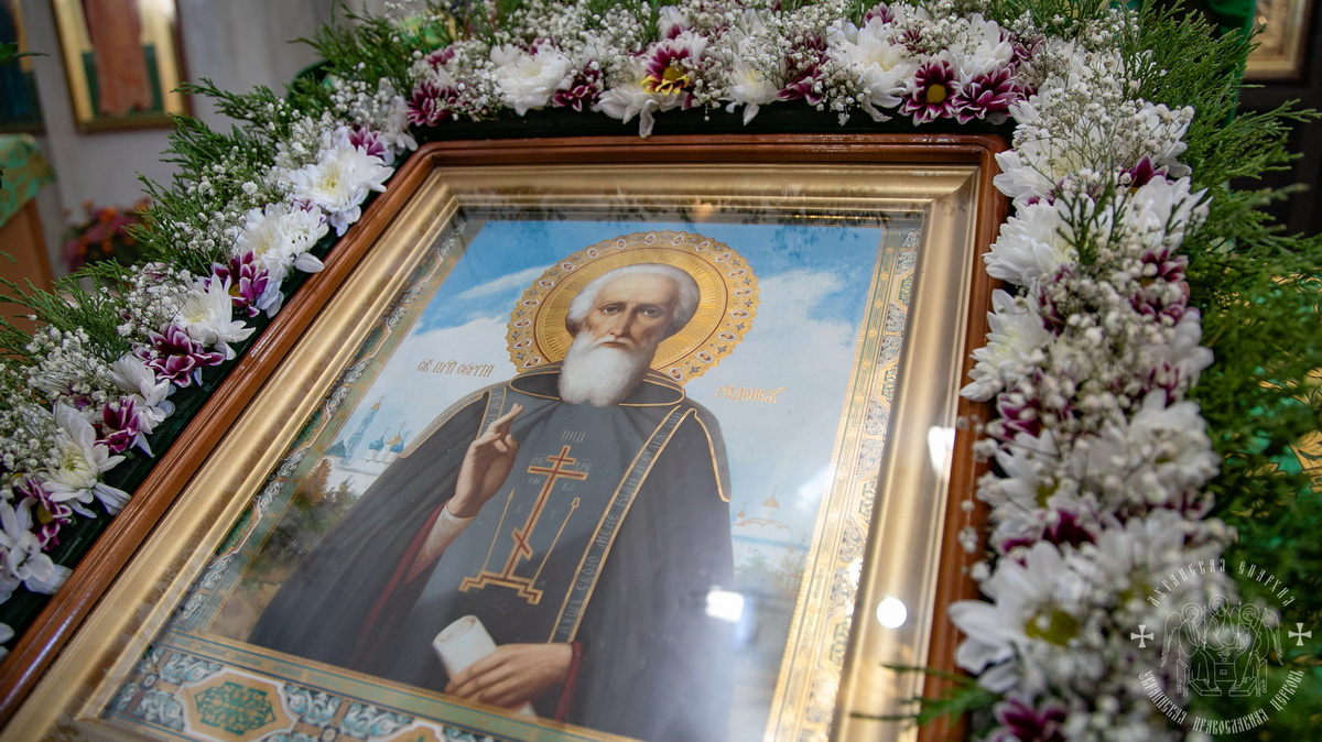 По окончании литургии священнослужители совершили славление преподобному Сергию Радонежскому, прочли молитву святому и окропили молящихся святой водой.
