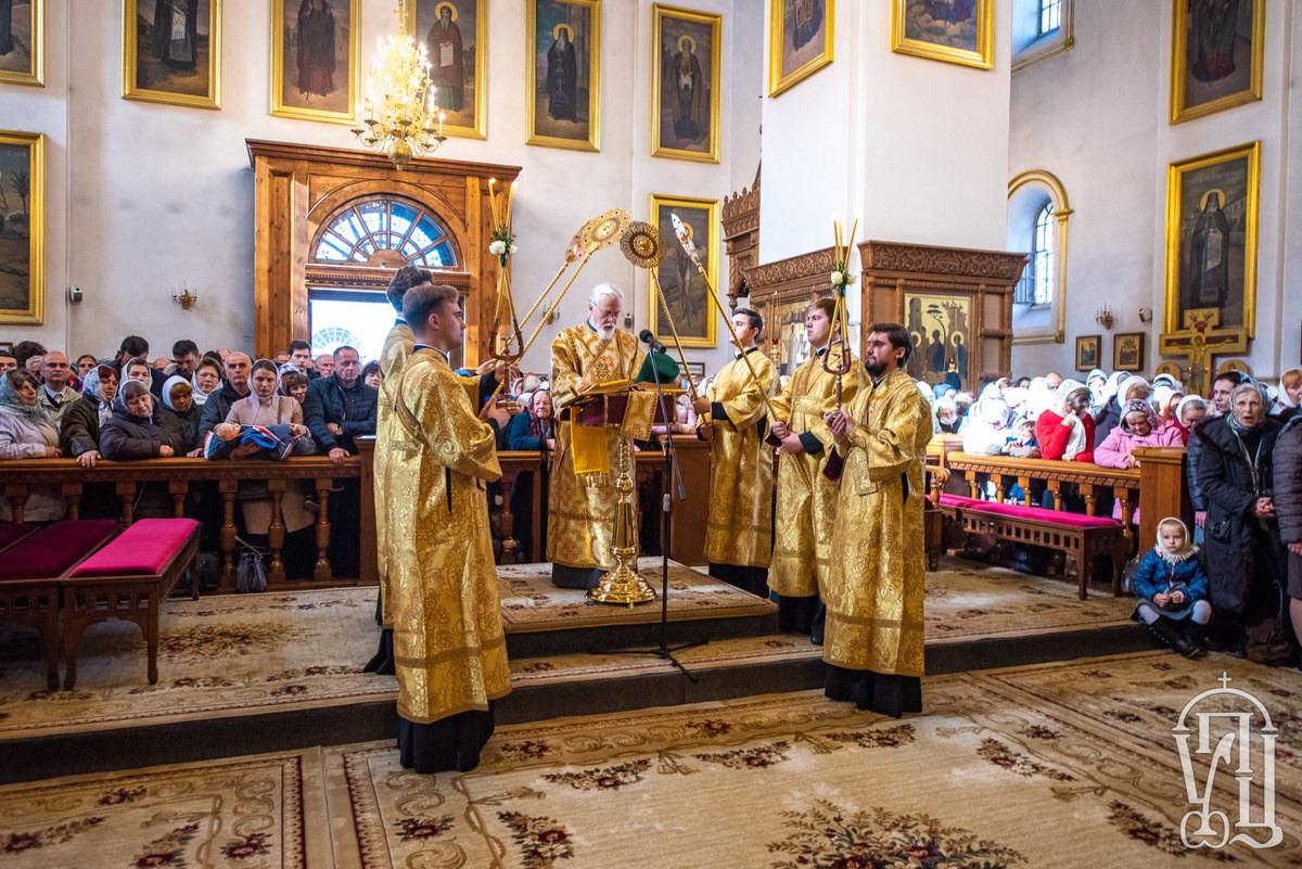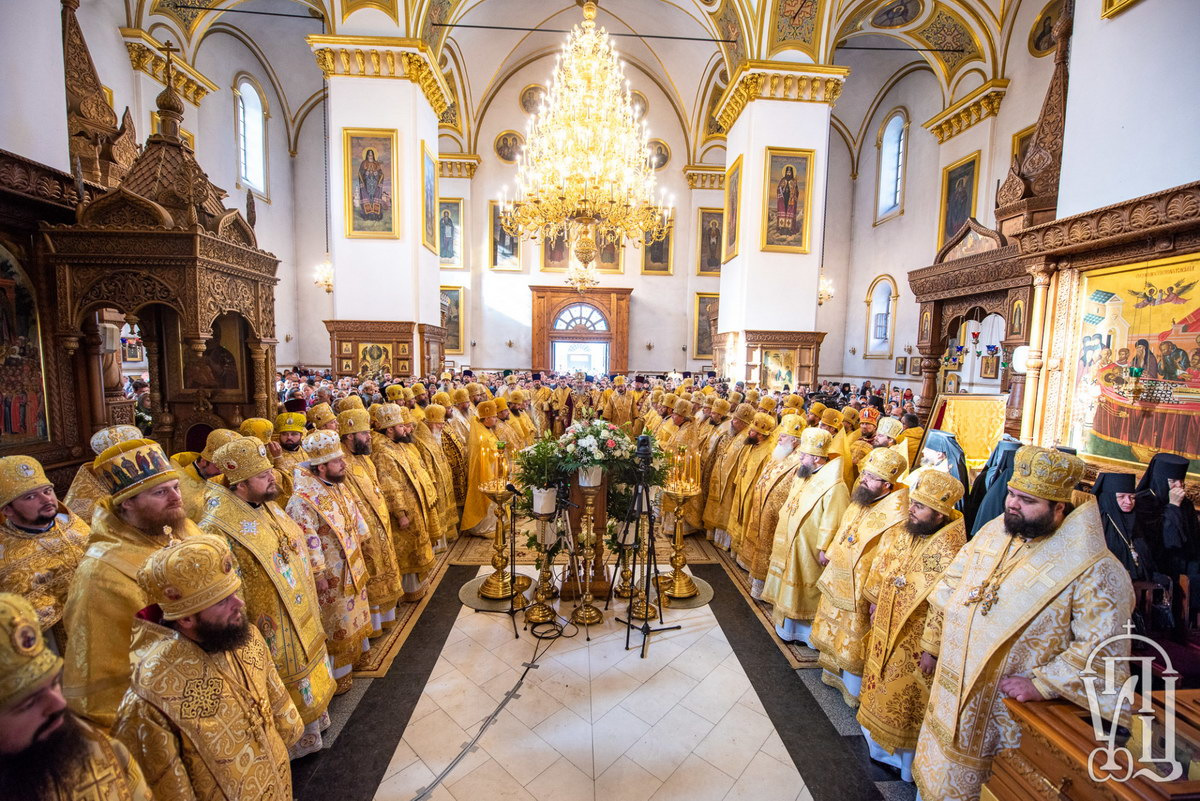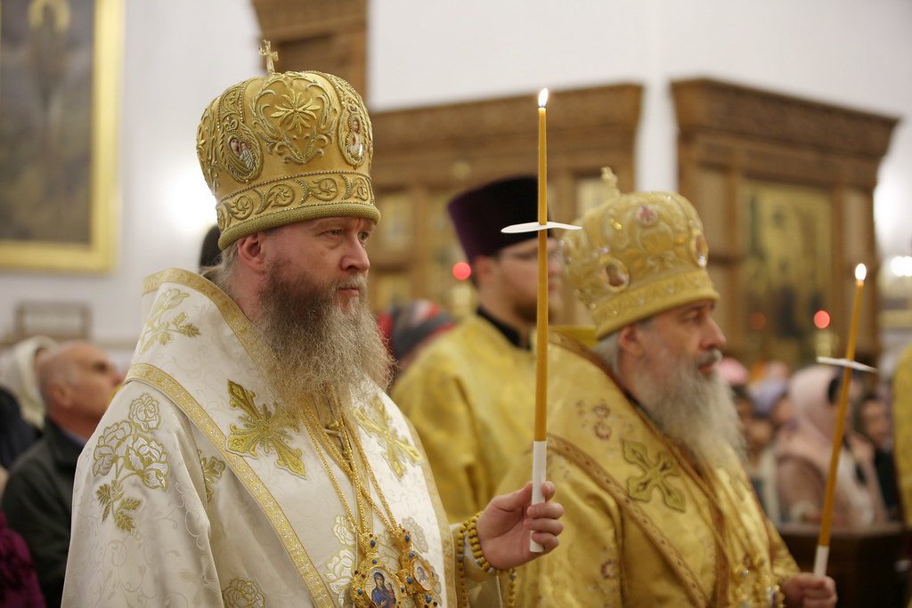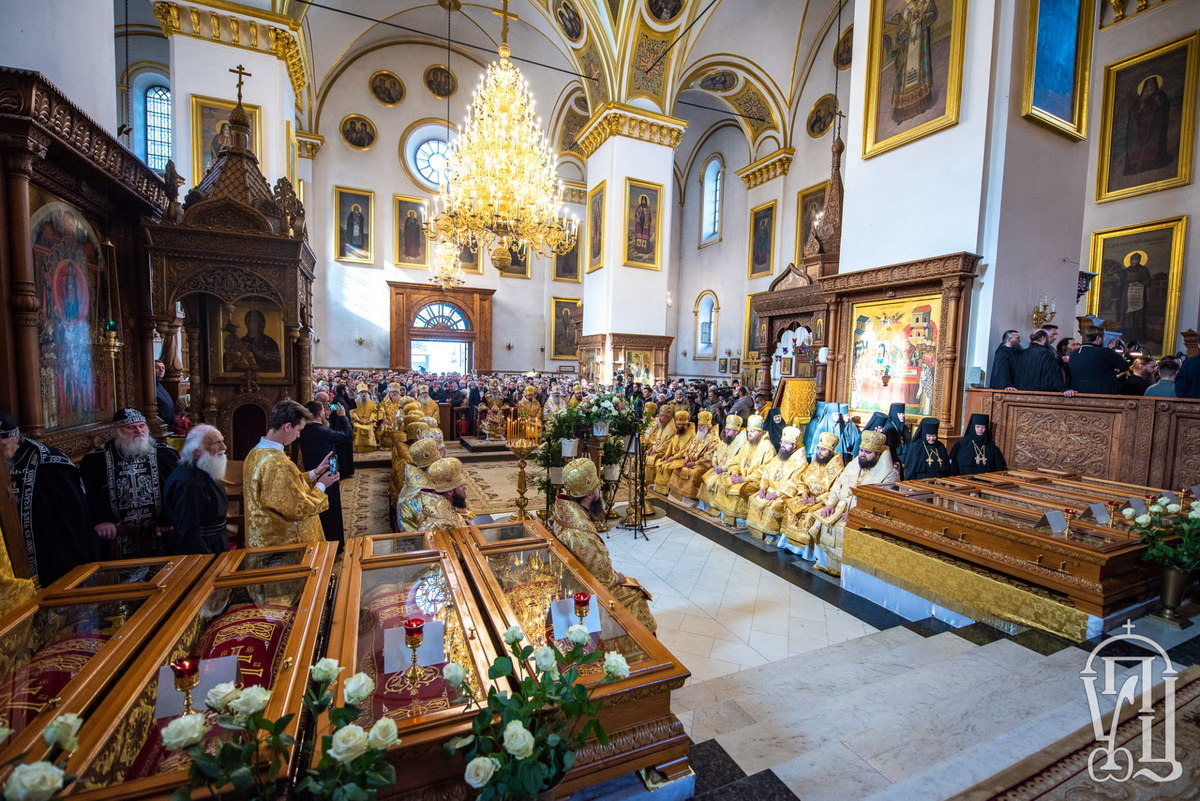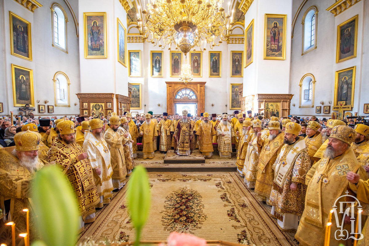 За Божественной литургией в Успенском соборе обители Предстоятелю сослужили: митрополит Одесский и Измаильский Агафангел, митрополит Донецкий и Мариупольский Иларион, митрополит Вышгородский и Чернобыльский Павел, архиепископ Перемышльский и Горлицкий Паисий (Польская Православная Церковь), архиепископ Унгенский и Ниспоренский Петр (Православная Церковь Молдовы), митрополиты: Тернопольский и Кременецкий Сергий, Харьковский и Богодуховский Онуфрий, Запорожский и Мелитопольский Лука, Святогорский Арсений, Горловский и Славянский Митрофан, Изюмский и Купянский Елисей, Мукачевский и Ужгородский Феодор, Луганский и Алчевский Пантелеимон, Северодонецкий и Старобельский Никодим, Львовский и Галицкий Филарет; архиепископы: Краснолиманский Алипий, Макеевский Варнава, Бердянский и Приморский Ефрем, Александрийский и Светловодский Боголеп, Южненский Диодор; епископы: Иннокентий (Шестопаль), Хотинский Вениамин, Барышевский Виктор, Белогородский Сильвестр, Добропольский Спиридон, Волновахский Амвросий, Беловодский Павел, Ирпенский Лавр, Бородянский Марк, Новопсковский Иринарх, Константиновский Паисий, духовенство Лавры, Донецкой епархии и гости в священном сане. За богослужением молились настоятельницы монастырей УПЦ и многочисленные верующие.