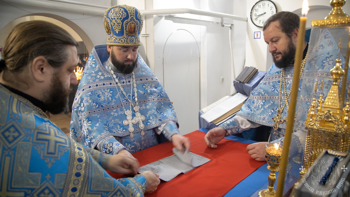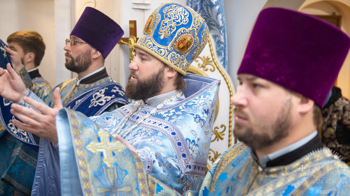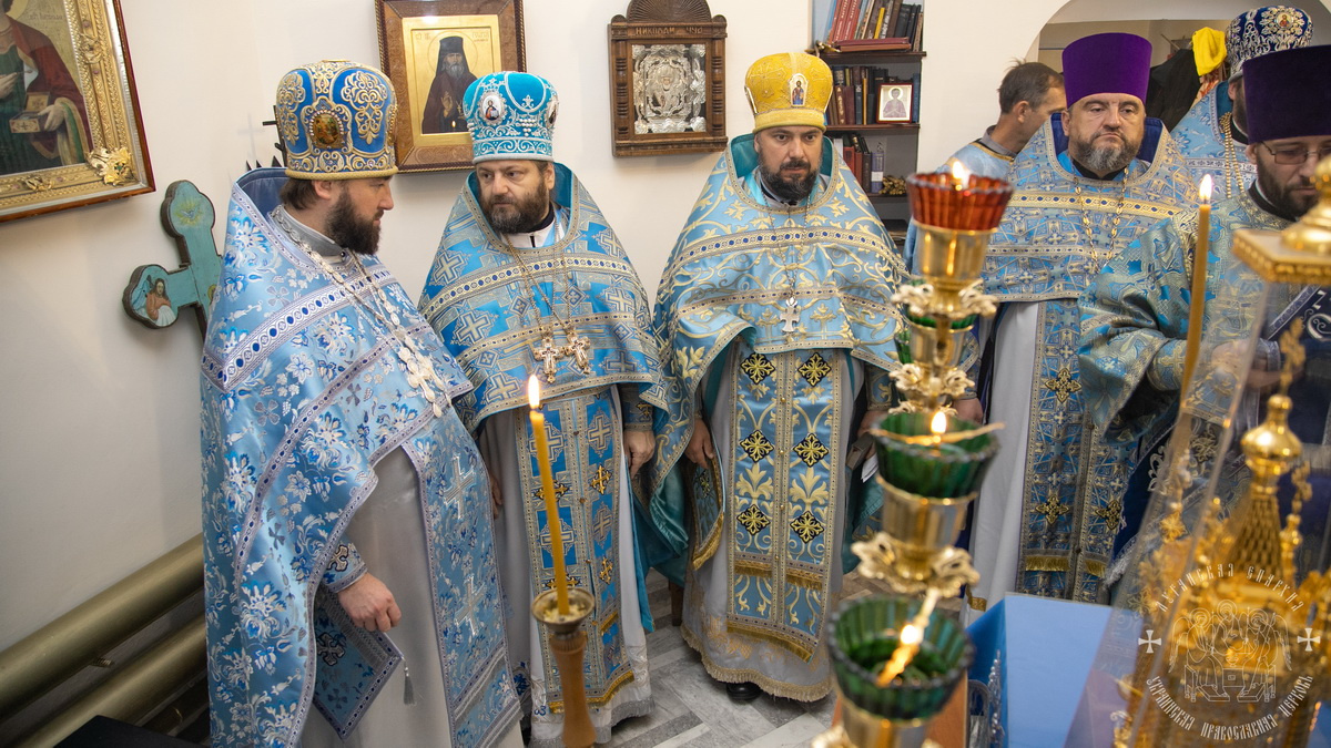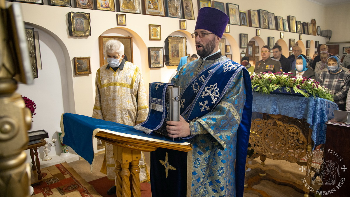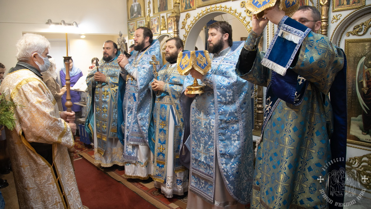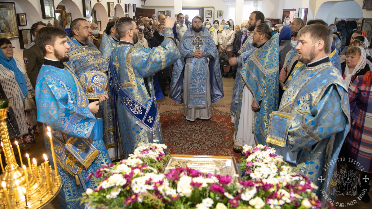 По окончании литургии священнослужители совершили славление празднику Покрова Божией Матери, после чего окропили молящихся святой водой.