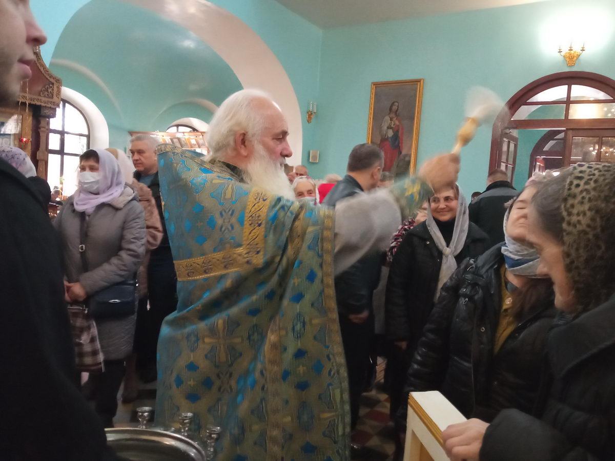 По окончании Литургии, прот. Владимир вместе со священнослужителями совершил молебное пение Пресвятой Богородице и окропил молящихся святой водой.