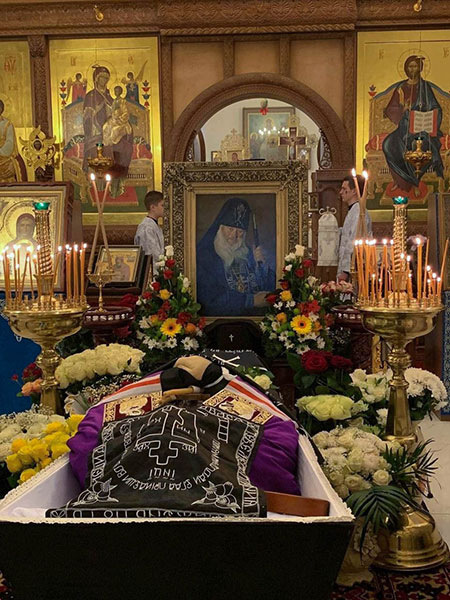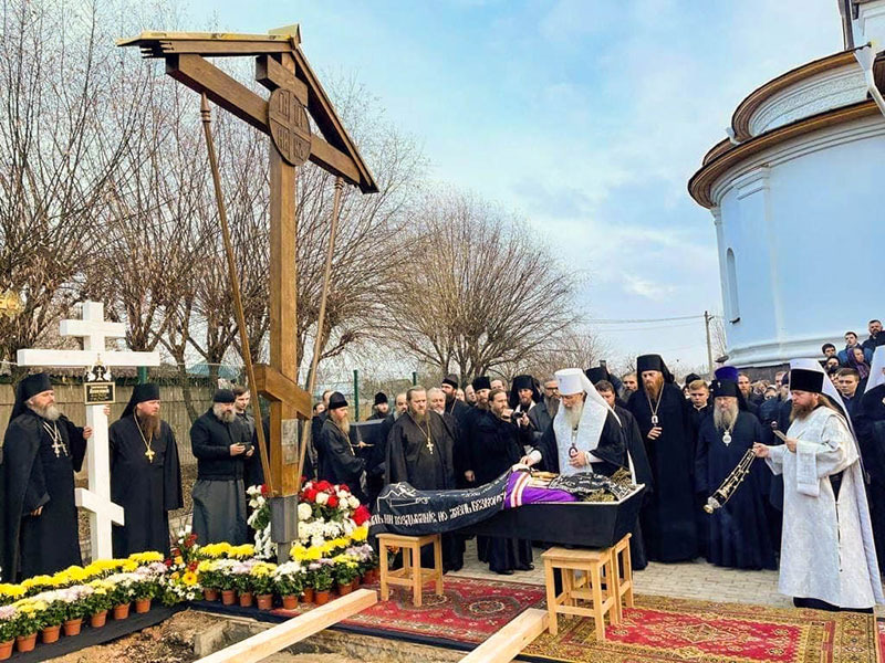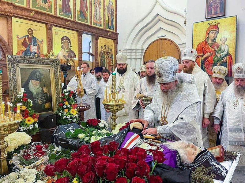 Затем митрополит Арсений в сослужении архипастырей и духовенства совершил чин отпевания и погребения схиархиепископа Алипия.