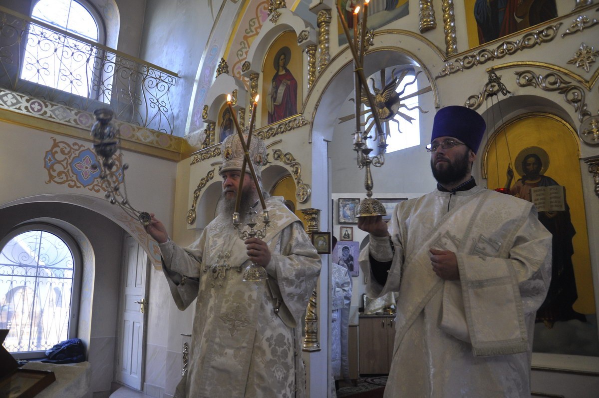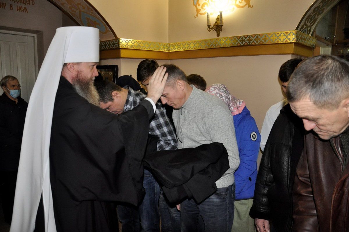 После сугубой ектении владыка вознес молитву о водворении мира в нашем Отечестве и молитву «во время распространения вредоносного поветрия».