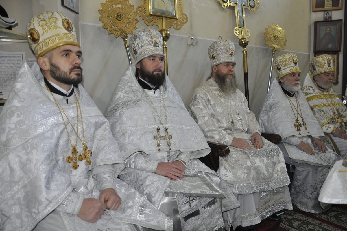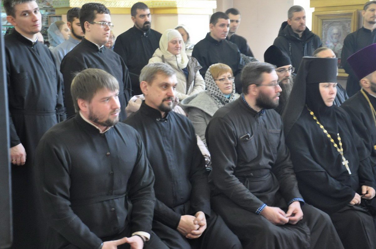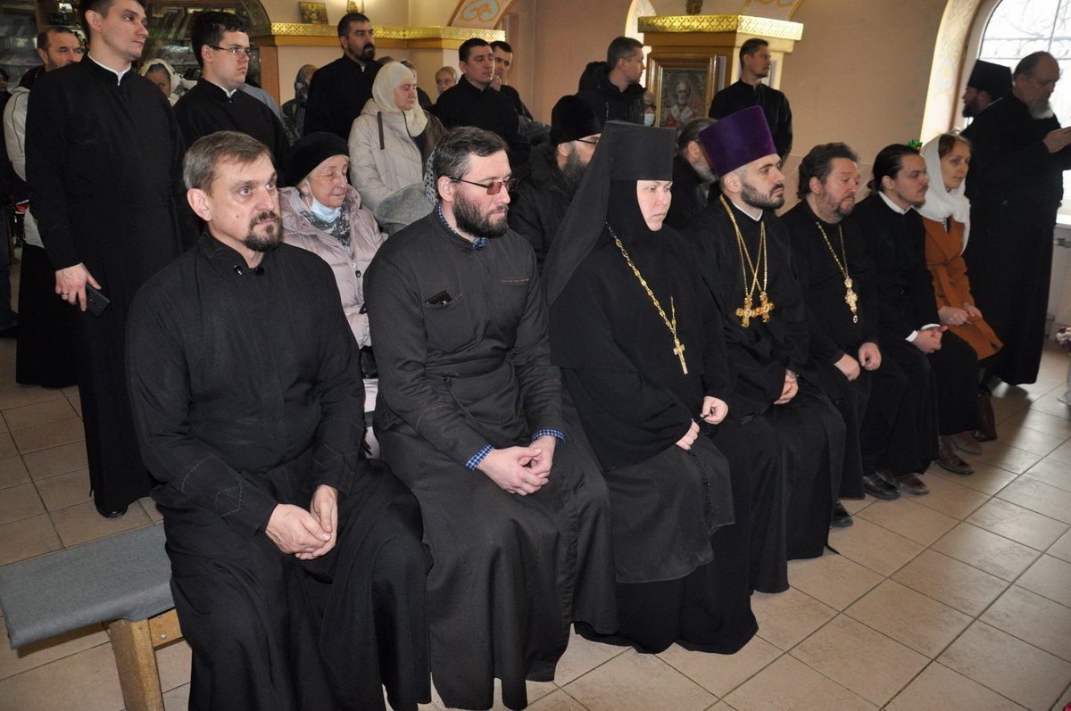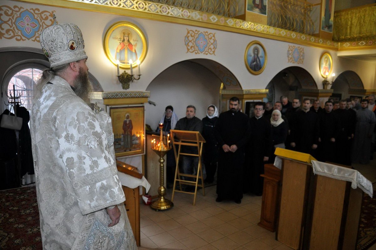 За Божественной литургией Его Высокопреосвященству сослужил секретарь епархии архим. Макарий (Любавцев), настоятель храма, профессор прот. Владимир Конончук, а также клирики храма, преподаватели и студенты в священном сане.