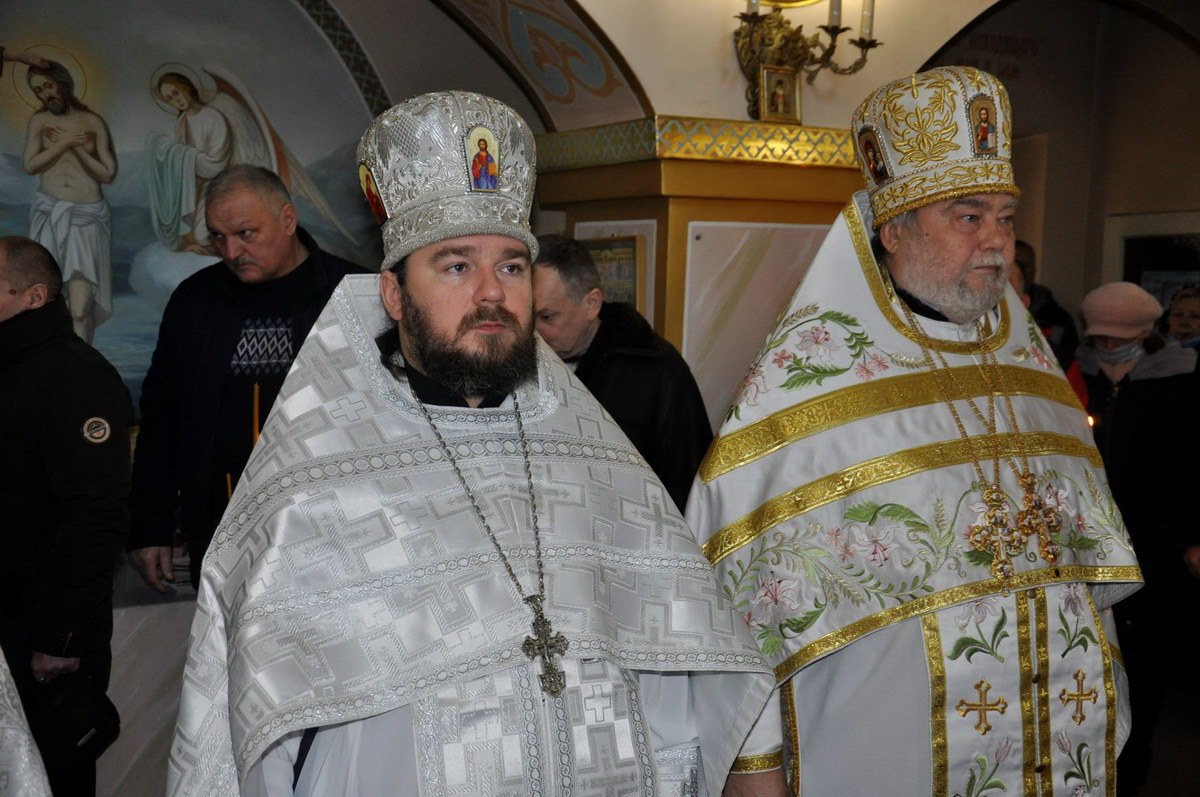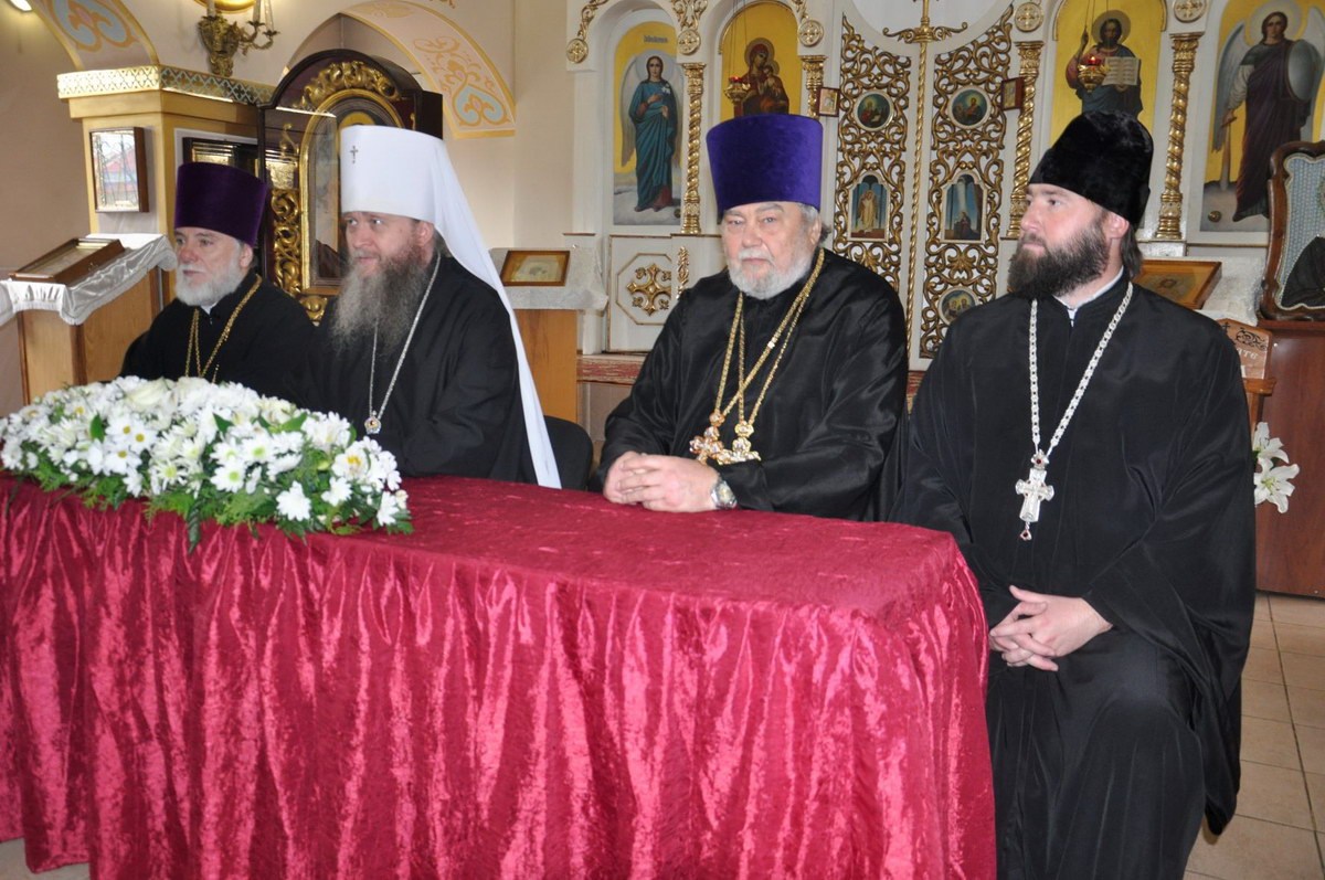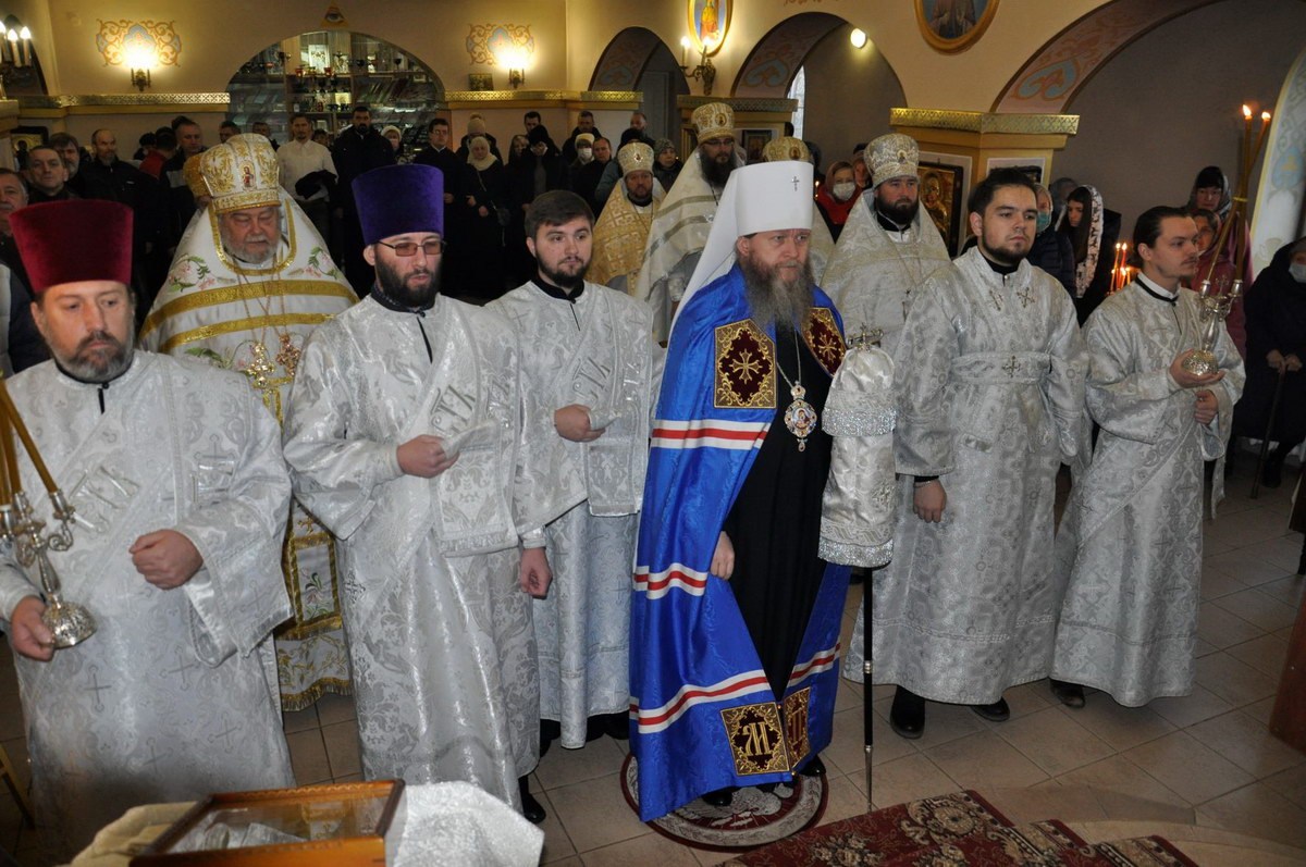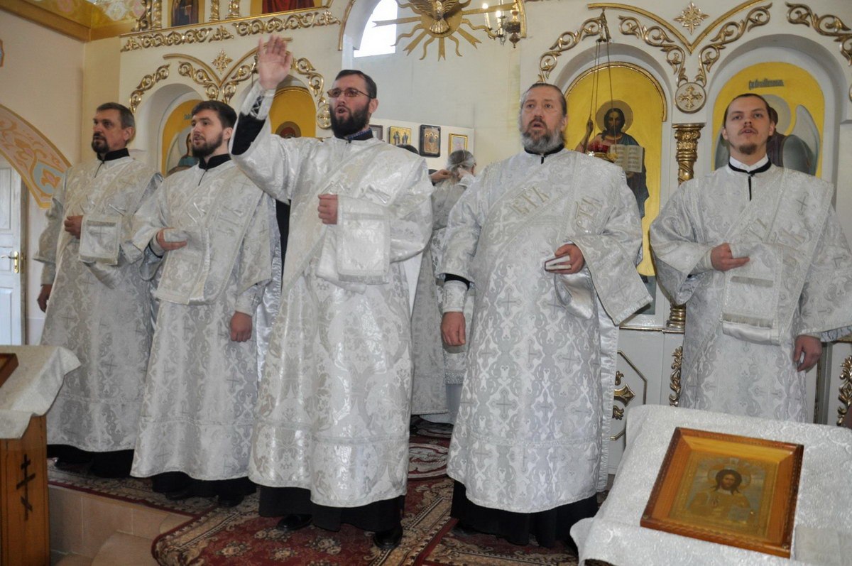 За Божественной литургией Его Высокопреосвященству сослужил секретарь епархии архим. Макарий (Любавцев), настоятель храма, профессор прот. Владимир Конончук, а также клирики храма, преподаватели и студенты в священном сане.