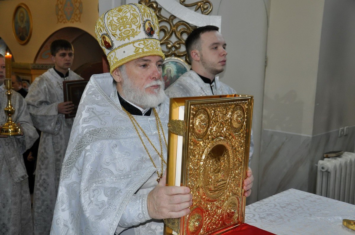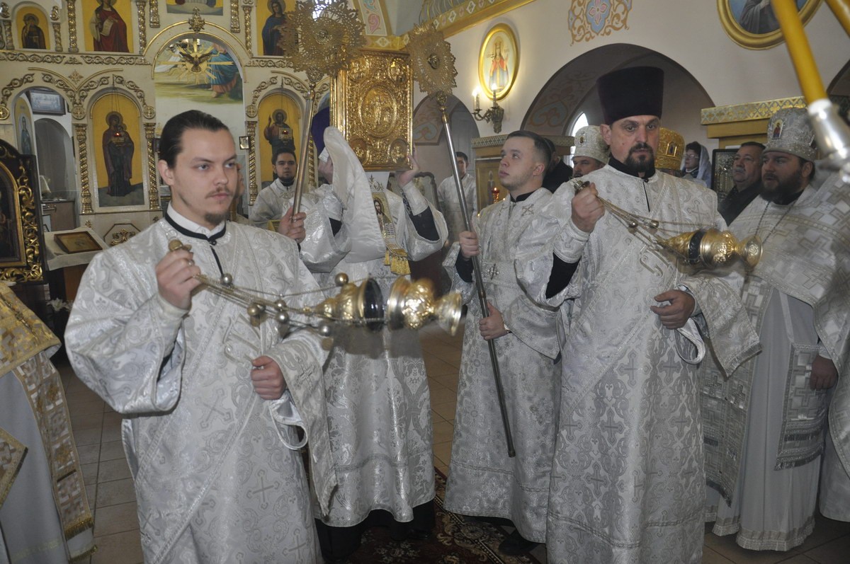 По окончании Литургии было совершено славление празднику, после которого архипастырь поздравил профессорско-преподавательский коллектив и студентов с актовым днём.