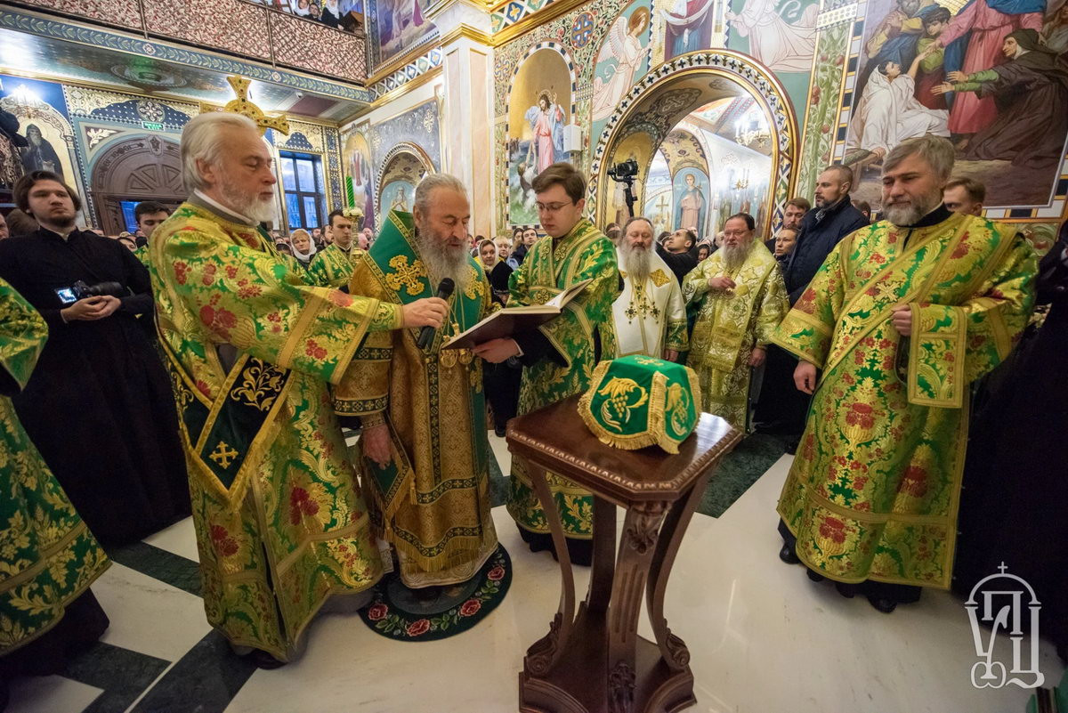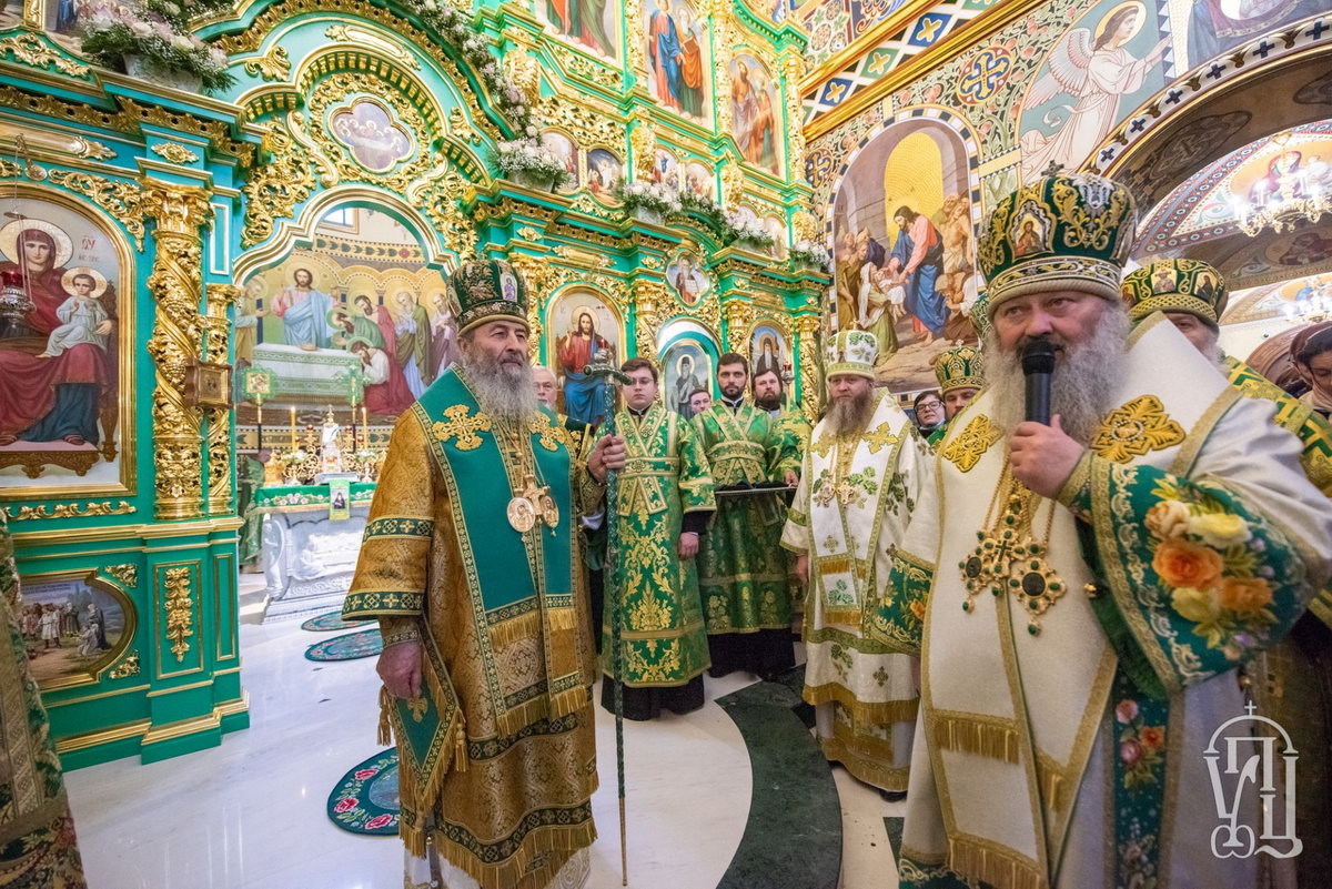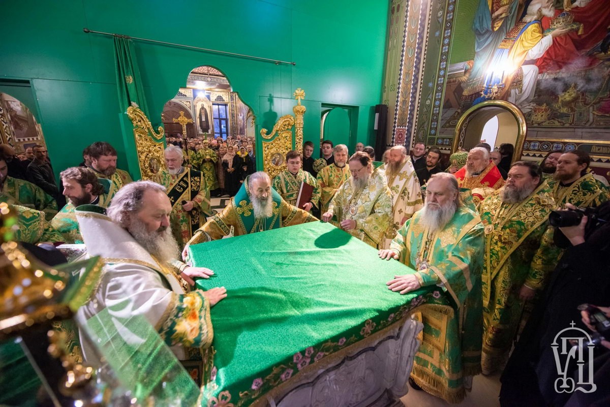 Предстоятелю сослужили: наместник Лавры митрополит Вышгородский и Чернобыльский Павел, председатель Отдела внешних церковных связей УПЦ митрополит Черновицкий и Буковинский Мелетий, управляющий делами УПЦ митрополит Бориспольский и Броварской Антоний, митрополит Николаевский и Очаковский Питирим, митрополит Криворожский и Никопольский Ефрем, митрополит Могилев-Подольский и Шаргородский Агапит, митрополит Житомирский и Новоград-Волынский Никодим, митрополит Луганский и Алчевский Пантелеимон, митрополит Роменский и Буринский Иосиф, митрополит Львовский и Галицкий Филарет, митрополит Нежинский и Прилукский Климент, митрополит Винницкий и Барский Варсонофий, архиепископ Гурий (Кузьменко), архиепископ Бучанский Пантелеимон, иерарх Белорусской Православной Церкви архиепископ Гомельский и Жлобинский Стефан, архиепископ Обуховский Иона, архиепископ Фастовский Дамиан, архиепископ Золотоношский Иоанн, архиепископ архиепископ Иванковский Кассиан, иерарх РПЦЗ епископ Сиэтлийский Феодосий, епископ Дионисий (Константинов), епископ Белогородский Сильвестр, епископ Петропавловский Андрей, епископ Вишневский Спиридон, епископ Ирпенский Лавр, епископ Бородянский Марк, епископ Ладанский Феодосий, духовенство обители и гости в сане.