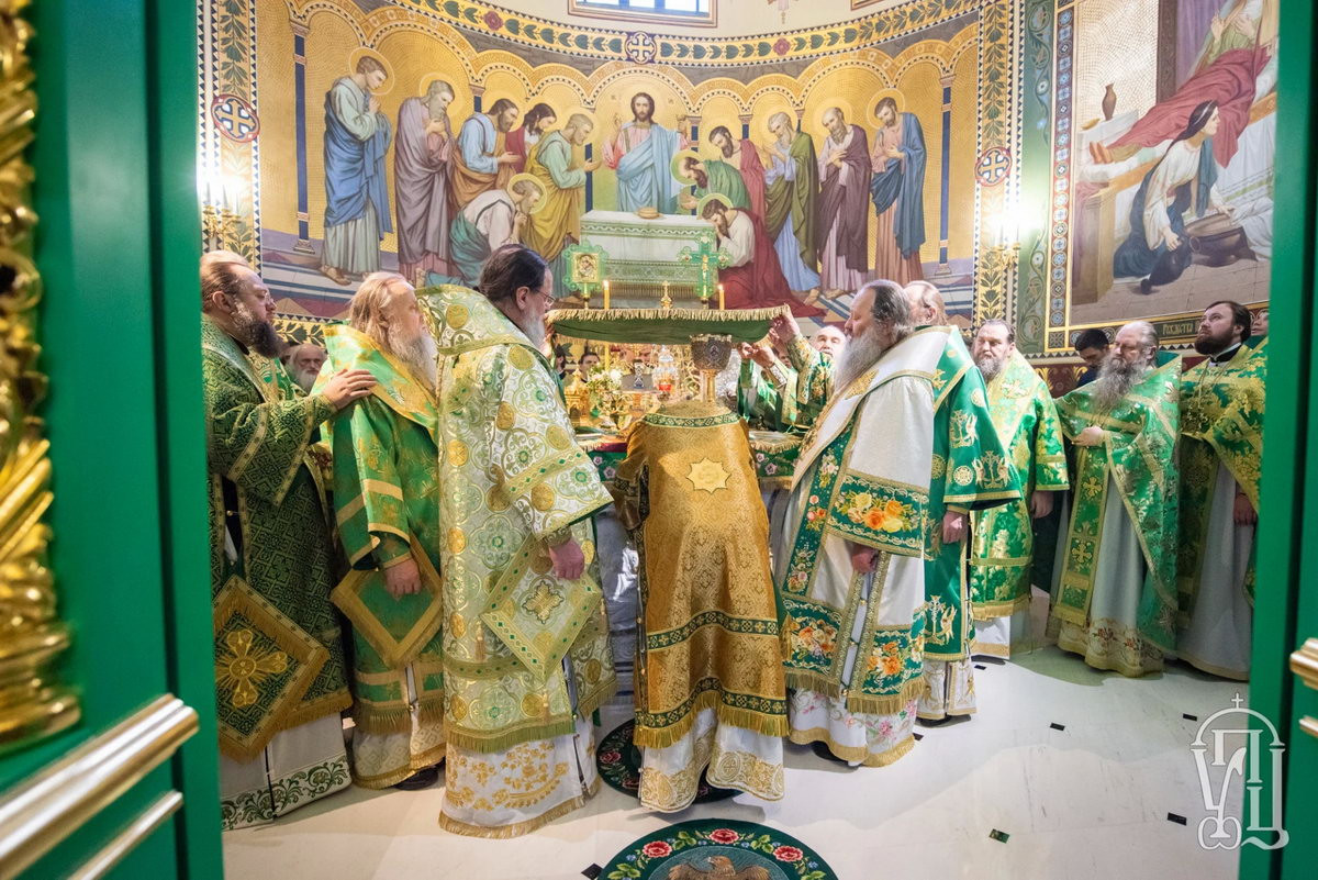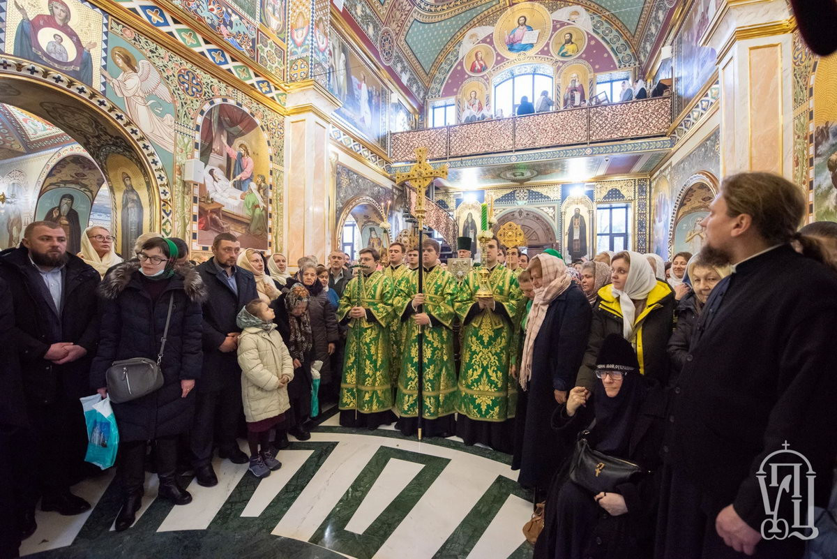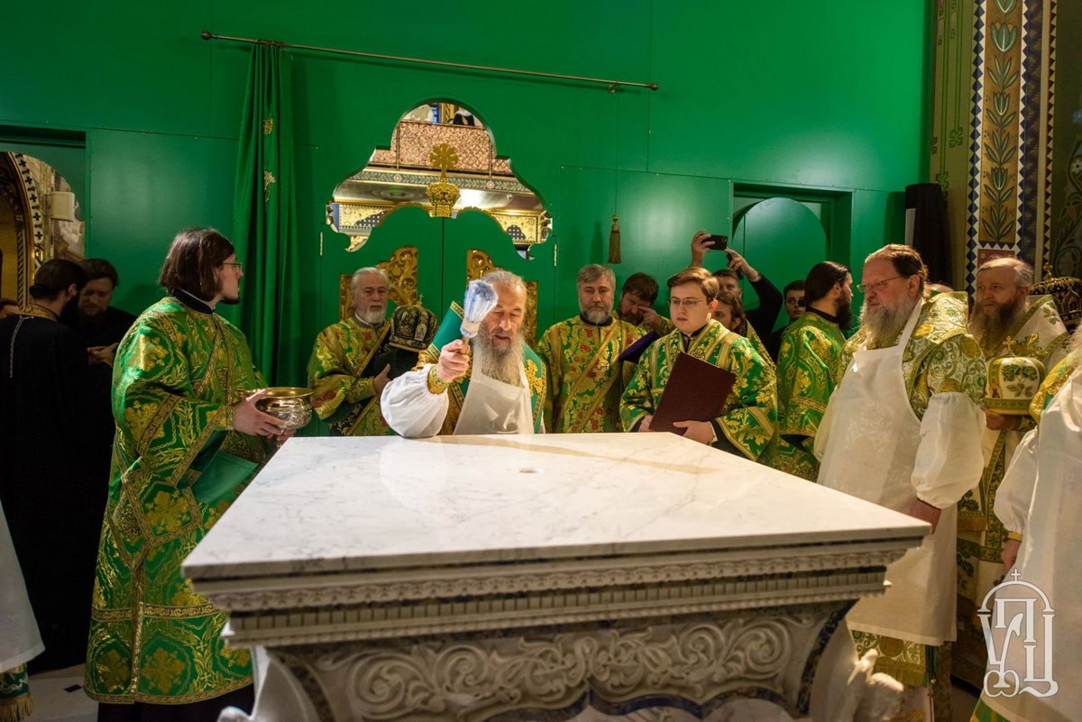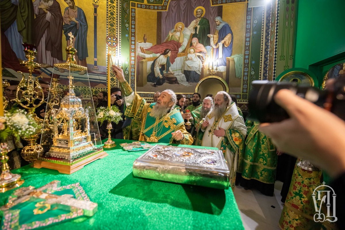 Предстоятелю сослужили: наместник Лавры митрополит Вышгородский и Чернобыльский Павел, председатель Отдела внешних церковных связей УПЦ митрополит Черновицкий и Буковинский Мелетий, управляющий делами УПЦ митрополит Бориспольский и Броварской Антоний, митрополит Николаевский и Очаковский Питирим, митрополит Криворожский и Никопольский Ефрем, митрополит Могилев-Подольский и Шаргородский Агапит, митрополит Житомирский и Новоград-Волынский Никодим, митрополит Луганский и Алчевский Пантелеимон, митрополит Роменский и Буринский Иосиф, митрополит Львовский и Галицкий Филарет, митрополит Нежинский и Прилукский Климент, митрополит Винницкий и Барский Варсонофий, архиепископ Гурий (Кузьменко), архиепископ Бучанский Пантелеимон, иерарх Белорусской Православной Церкви архиепископ Гомельский и Жлобинский Стефан, архиепископ Обуховский Иона, архиепископ Фастовский Дамиан, архиепископ Золотоношский Иоанн, архиепископ архиепископ Иванковский Кассиан, иерарх РПЦЗ епископ Сиэтлийский Феодосий, епископ Дионисий (Константинов), епископ Белогородский Сильвестр, епископ Петропавловский Андрей, епископ Вишневский Спиридон, епископ Ирпенский Лавр, епископ Бородянский Марк, епископ Ладанский Феодосий, духовенство обители и гости в сане.