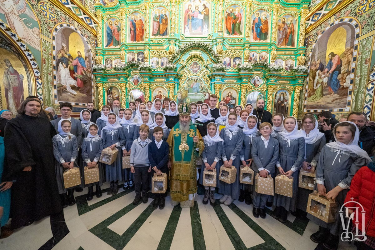 Наместник Лавры митрополит Павел произнес благодарственное слово. Затем Блаженнейший Митрополит Онуфрий отметил церковными наградами благотворителей Киево-Печерской обители и раздал подарки детям, которые пели за богослужением.
