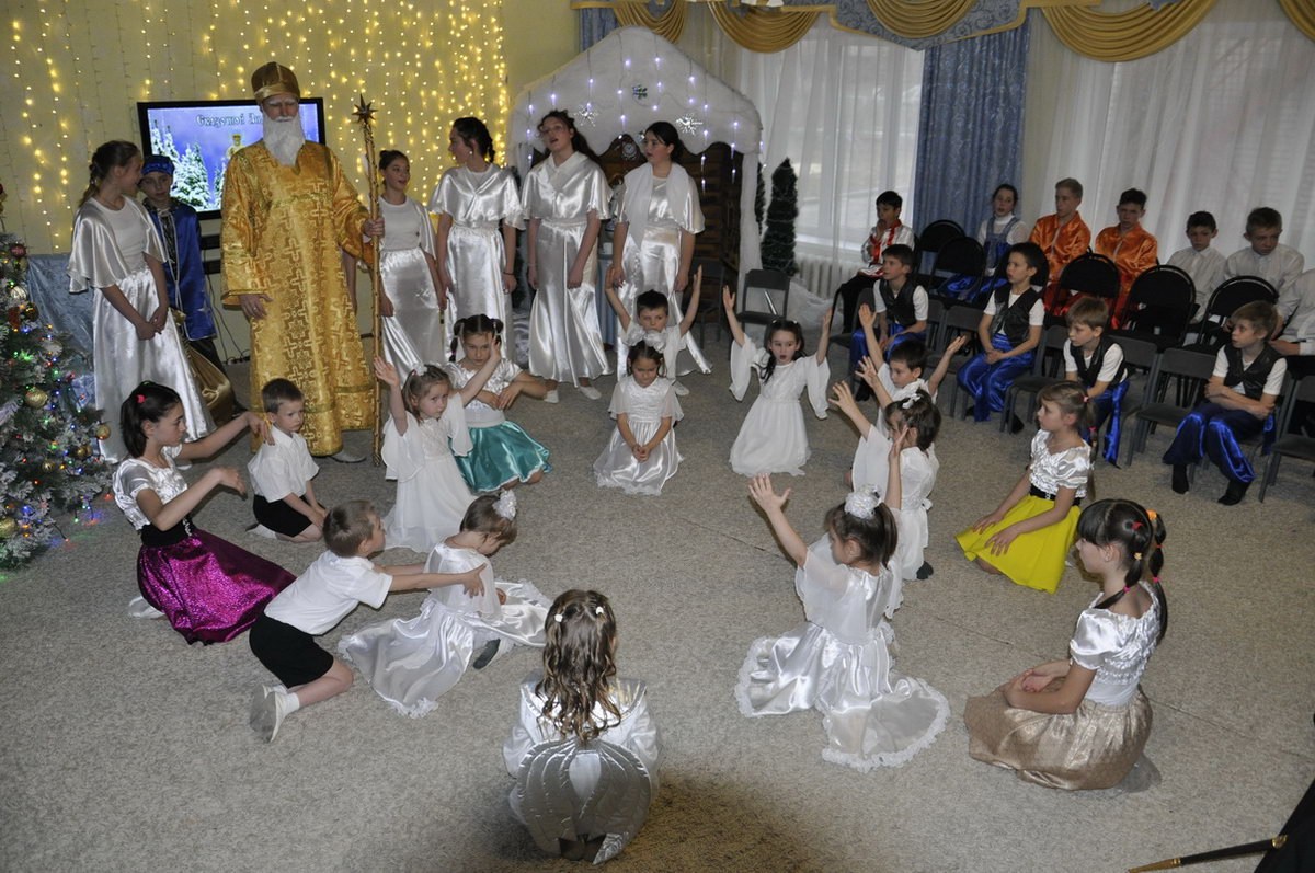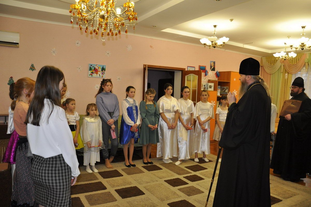 За праздничным чаепитием, дети поделились с владыкой своими талантами и достижениями, рассказали о своей подготовке к Новому году и празднику Рождества Христова, пропели песенки и прочли стихотворения, посвященные наступающим праздникам.