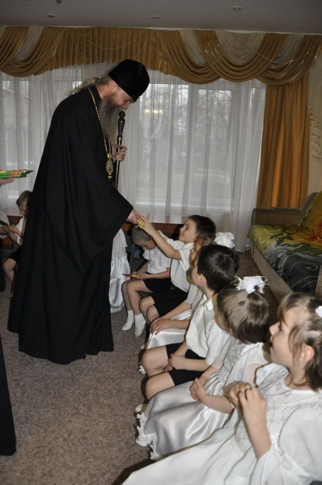Владыку и сопровождающих священнослужителей встречали дети и их воспитатели.