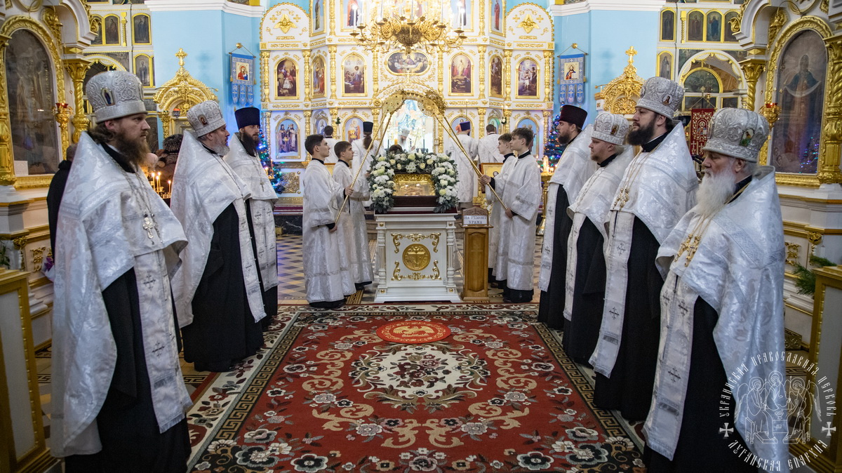 Вечером, 6 января, в Рождественский сочельник, Высокопреосвященнейший Пантелеимон, митрополит Луганский и Алчевский, совершил Великое повечерие и Утреню праздника Рождества Христова, в Свято-Петропавловском кафедральном соборе.