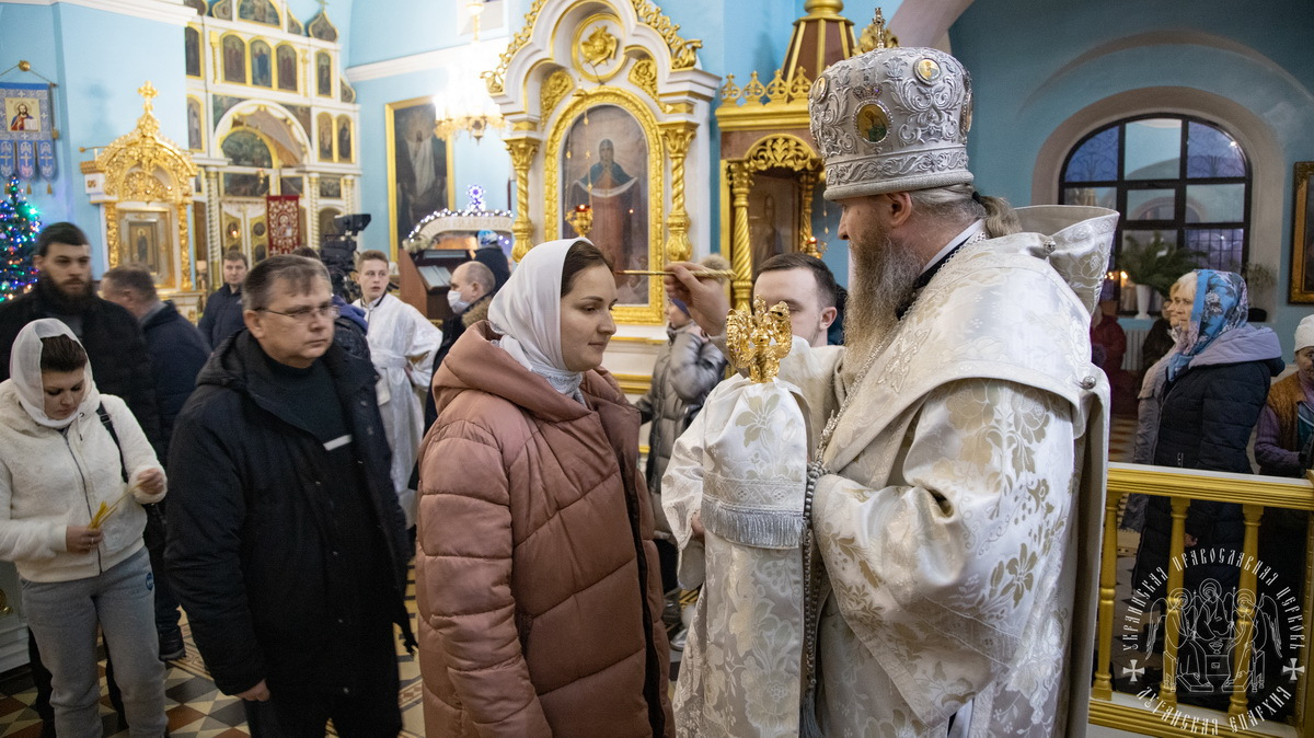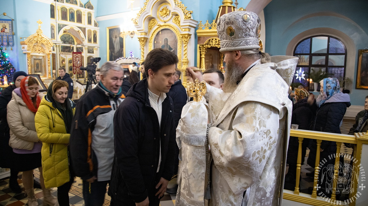 Во время чтения кафизм владыка поздравил клириков собора со светлым праздником Рождества Христова.