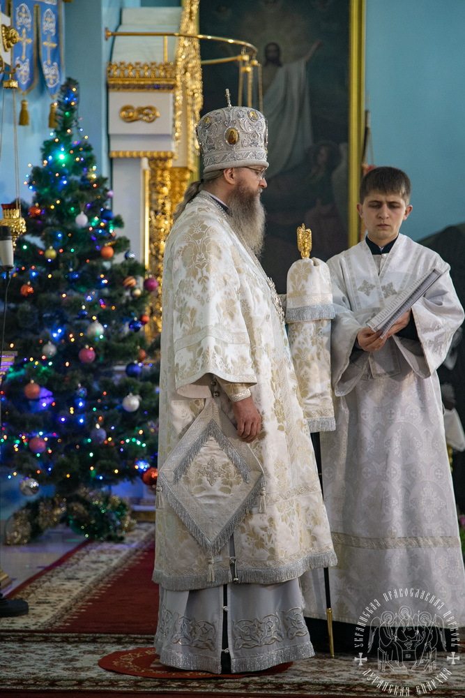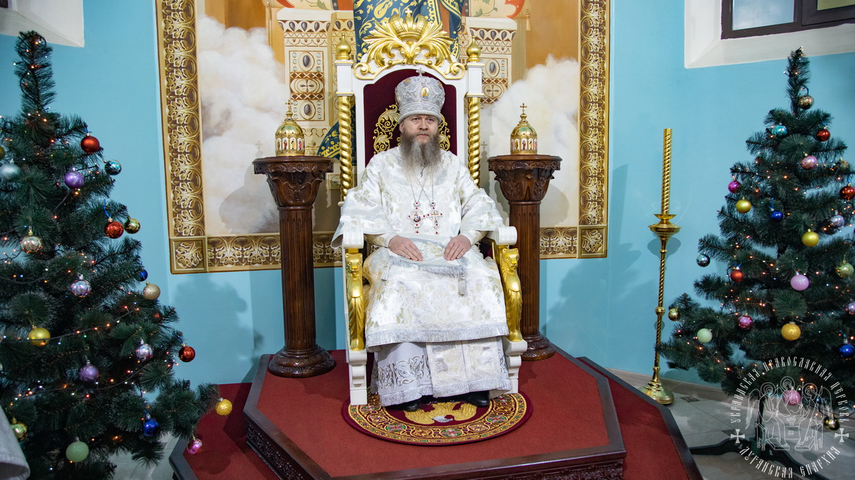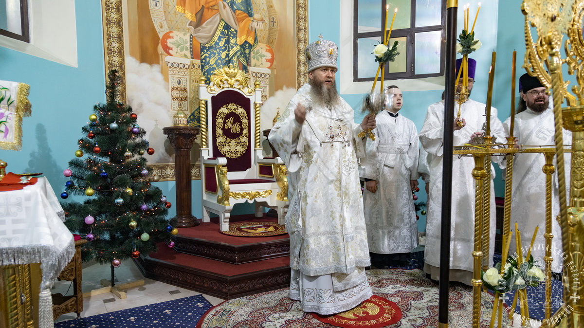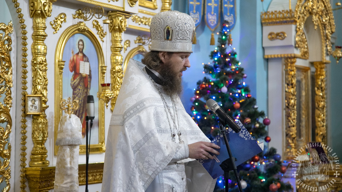 После Евангельского чтения, владыка Пантелеимон огласил Рождественское послание Святейшего Патриарха Московского и всея Руси Кирилла архипастырям, пастырям и всем верным чадам Русской Православной Церкви.