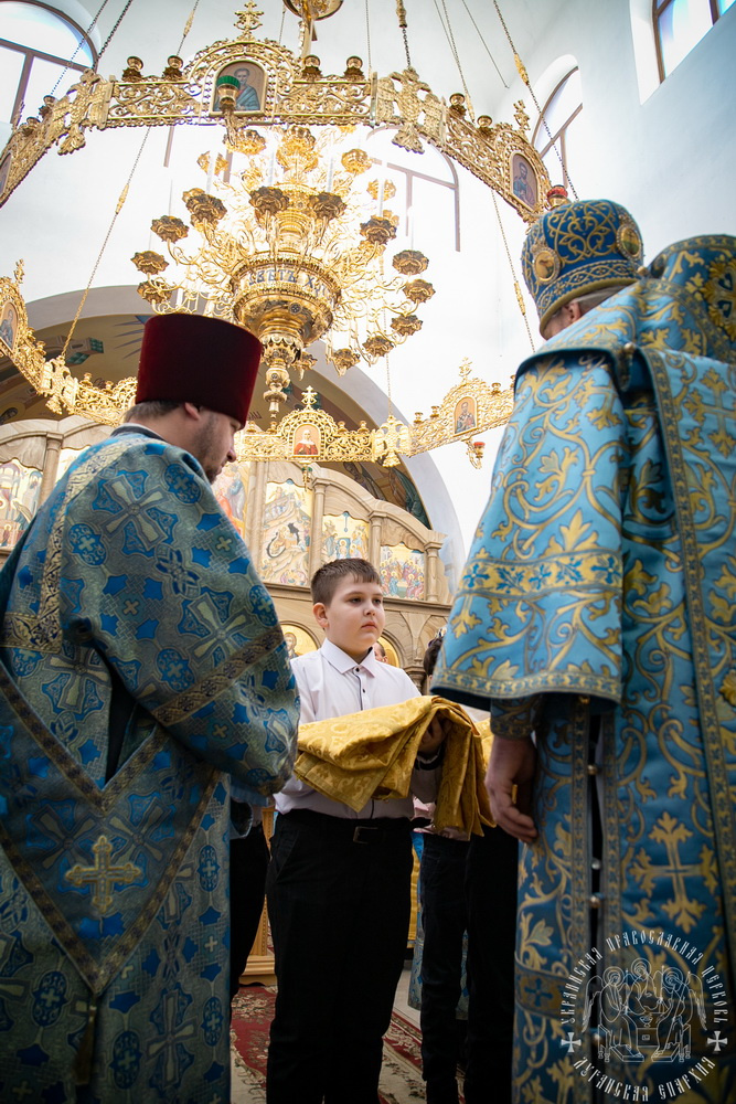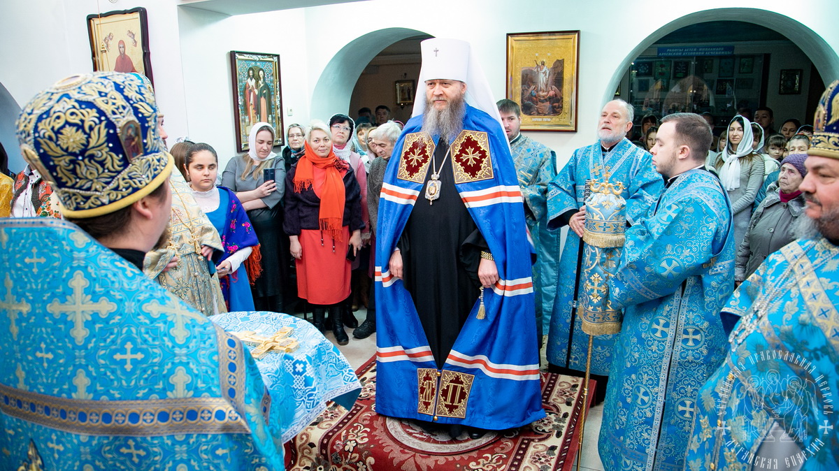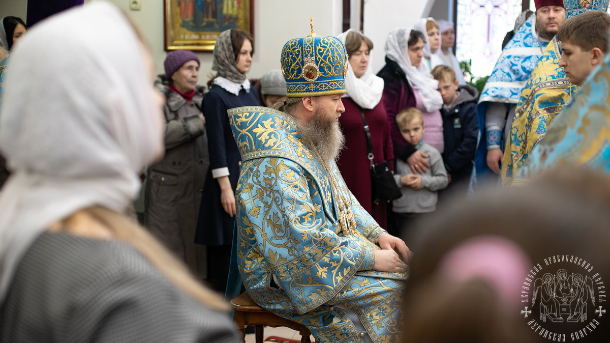 По прочтении Евангелия, владыка произнес проповедь о высокой роли Пресвятой Богородицы в домостроительстве нашего спасения, Которая родила Спасителя мира.