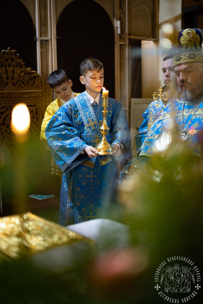 8 января, в праздник Собора Пресвятой Богородицы, Высокопреосвященнейший Пантелеимон, митрополит Луганский и Алчевский, совершил Божественную литургию в Свято-Владимирском храме при учебно-просветительском Центре г. Алчевска.