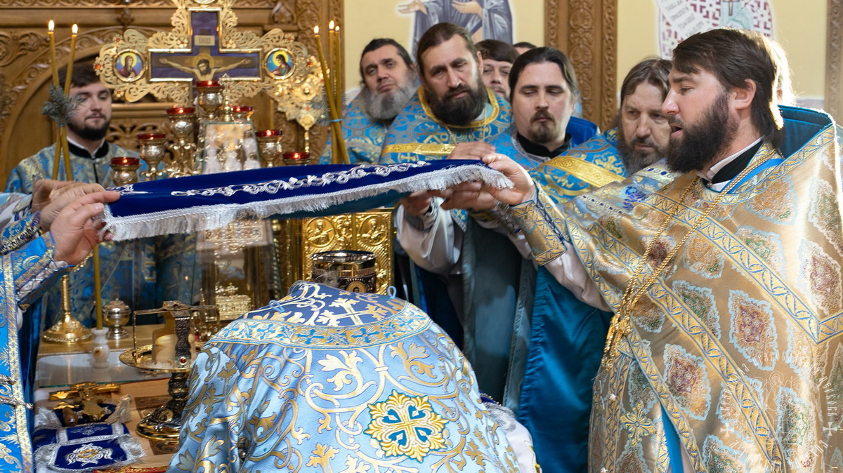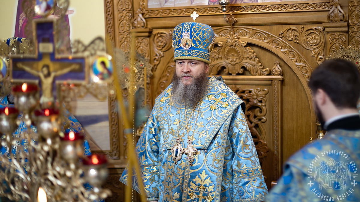 После сугубой ектении, владыка вознес молитву о мире в нашем Отечестве и молитву «во время распространения вредоносного поветрия».
