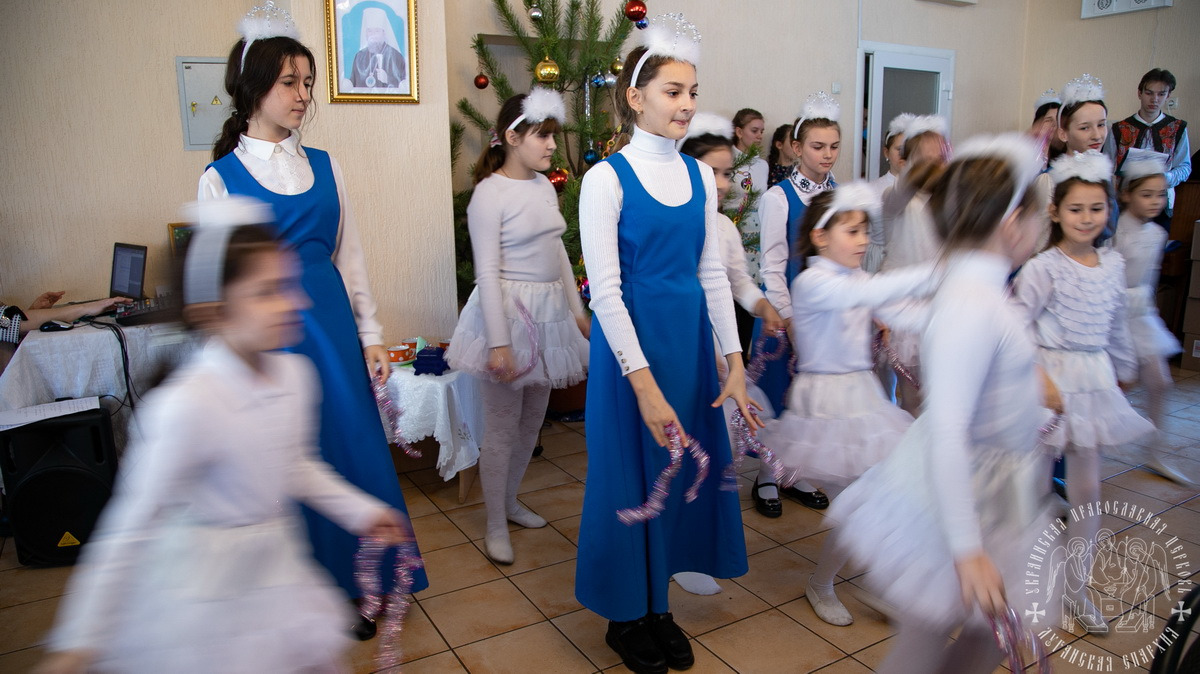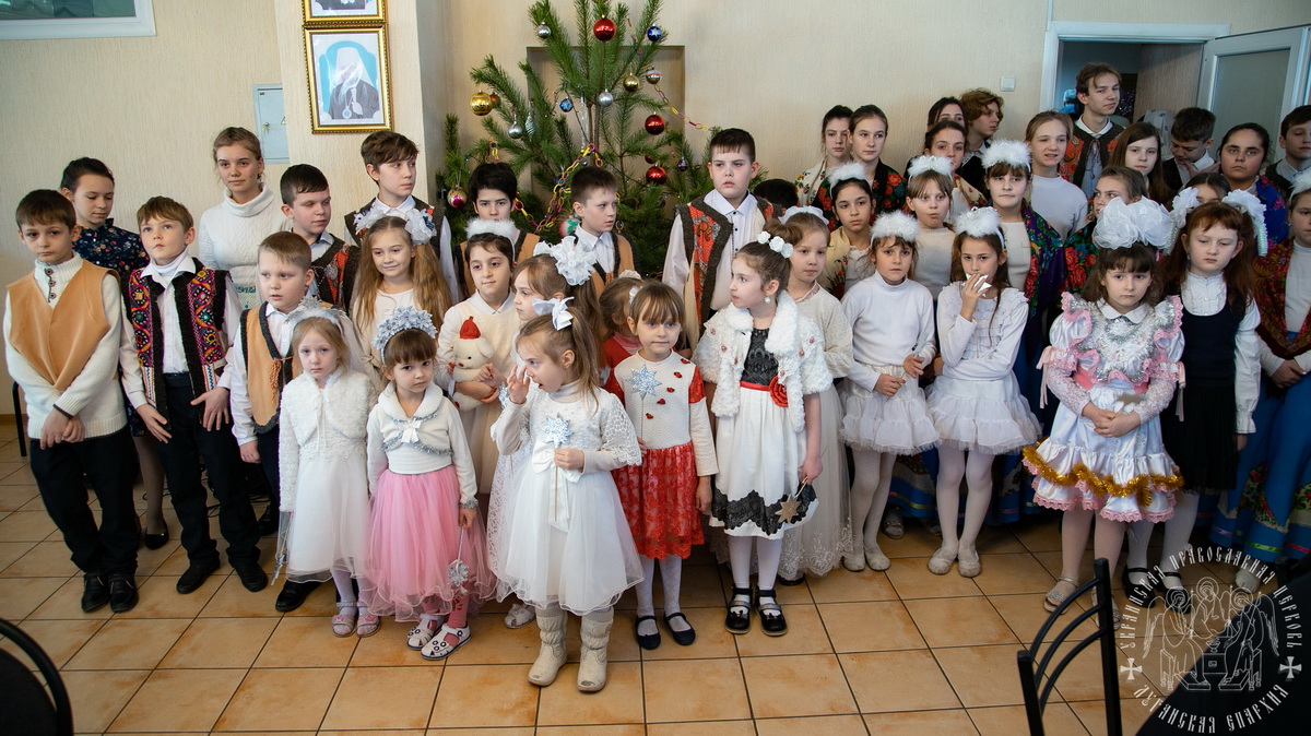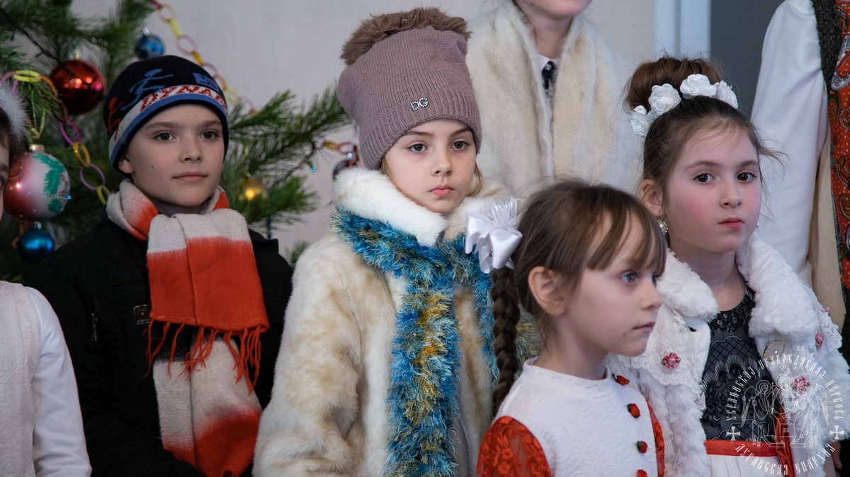 Воспитанники воскресных школ Алчевска и группа особых детей из Духовой лечебницы «Прибавление ума», под руководством Елизаветы Дьяченко, представили вниманию гостей Рождественскую концертную программу, прочли стишки и пропели колядки, посвященные празднику.