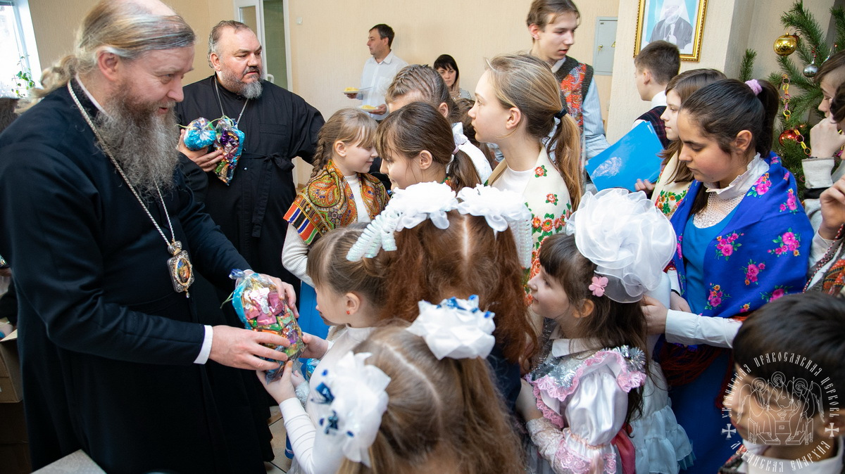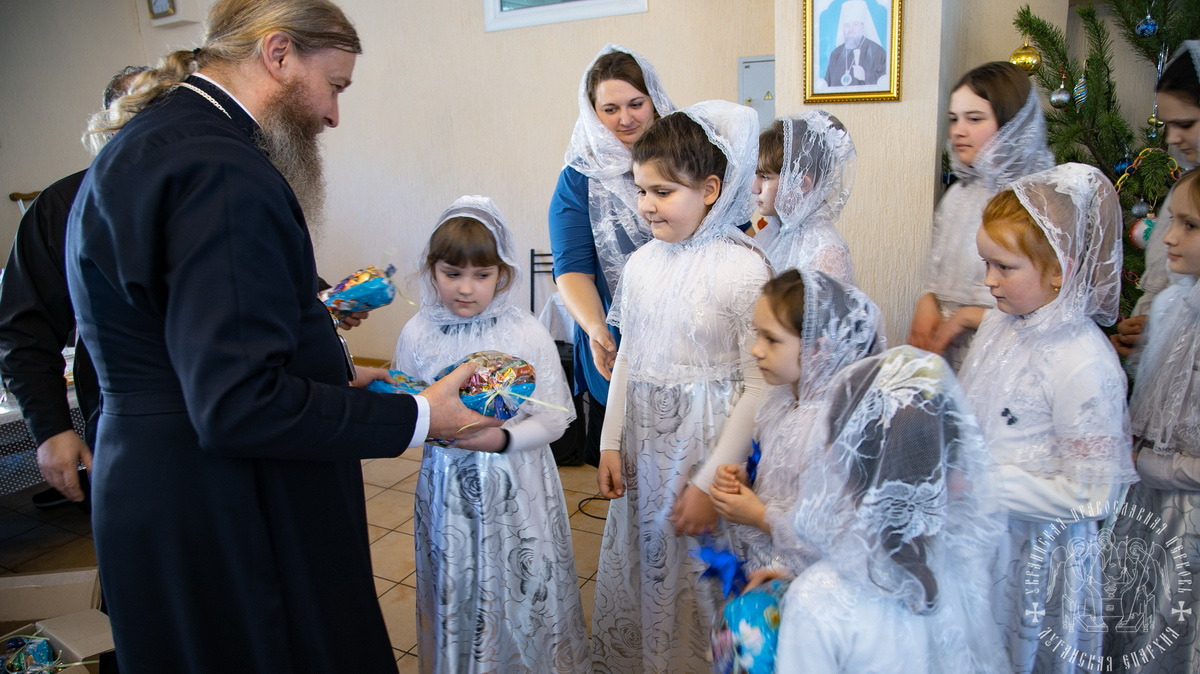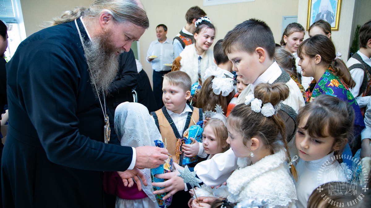 В свою очередь, владыка сердечно благодарил участников и организаторов спектакля, поздравил деток со светлым праздником Рождества Христова и вручил им сладкие подарки.