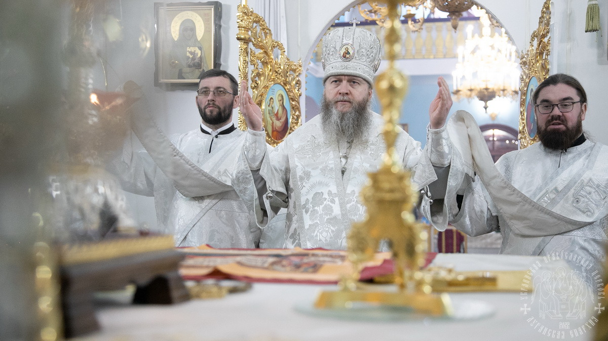 После сугубой ектении владыка вознес молитву о мире и умножении любви среди народа Отечества нашего и молитву «во время распространения вредоносного поветрия».