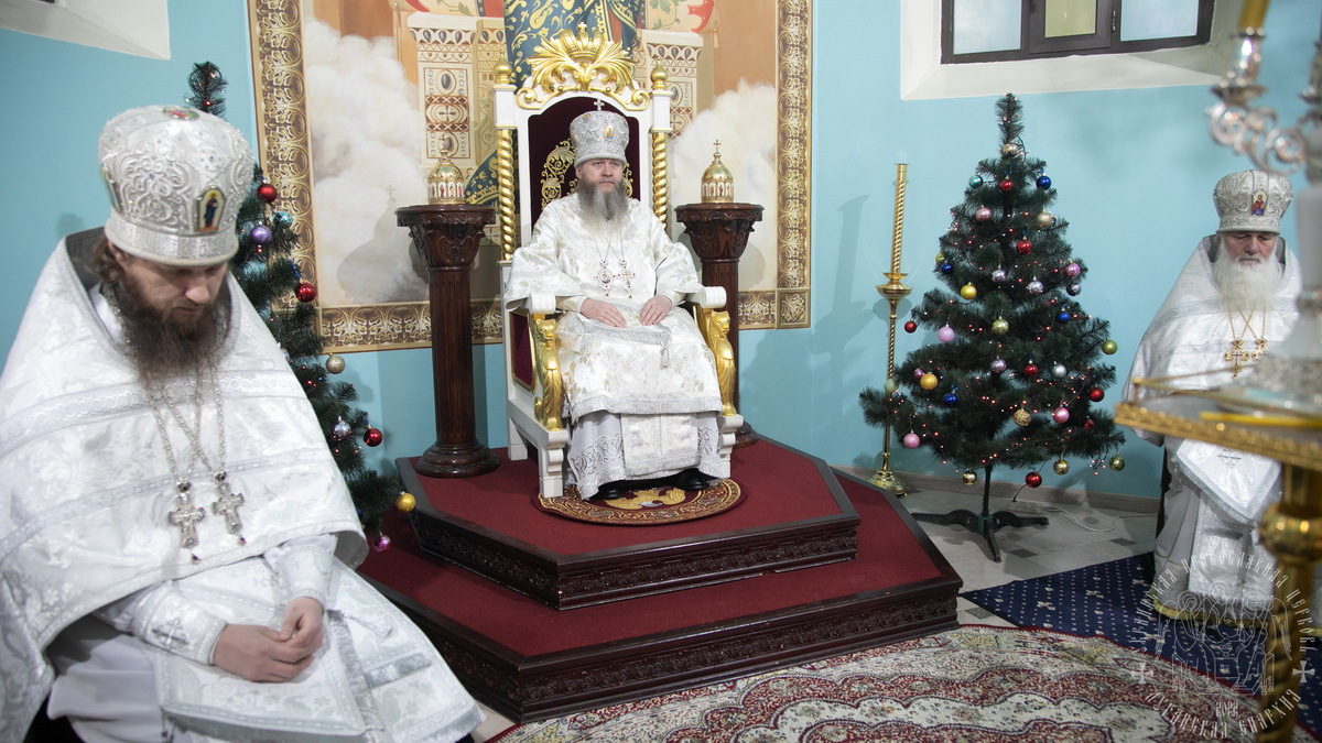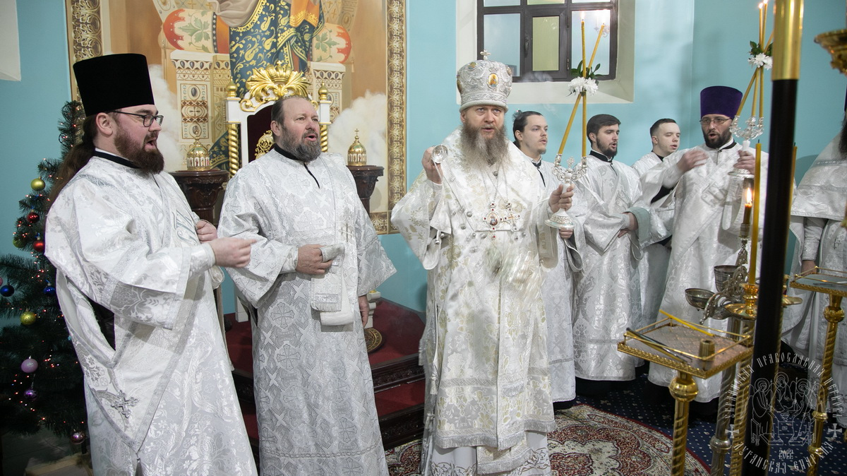 Вечером, накануне праздника, владыка совершил в соборе Утреню Богоявления.