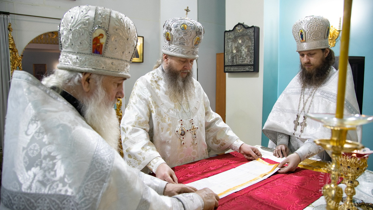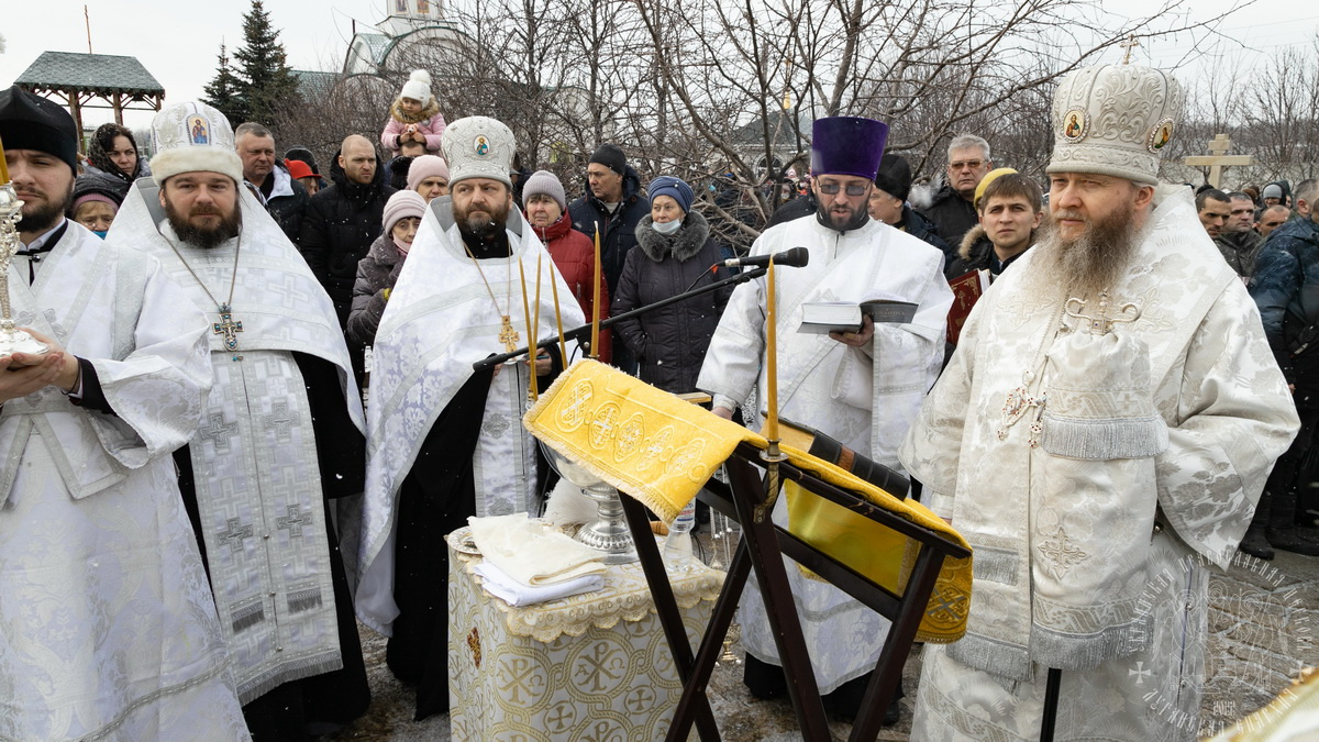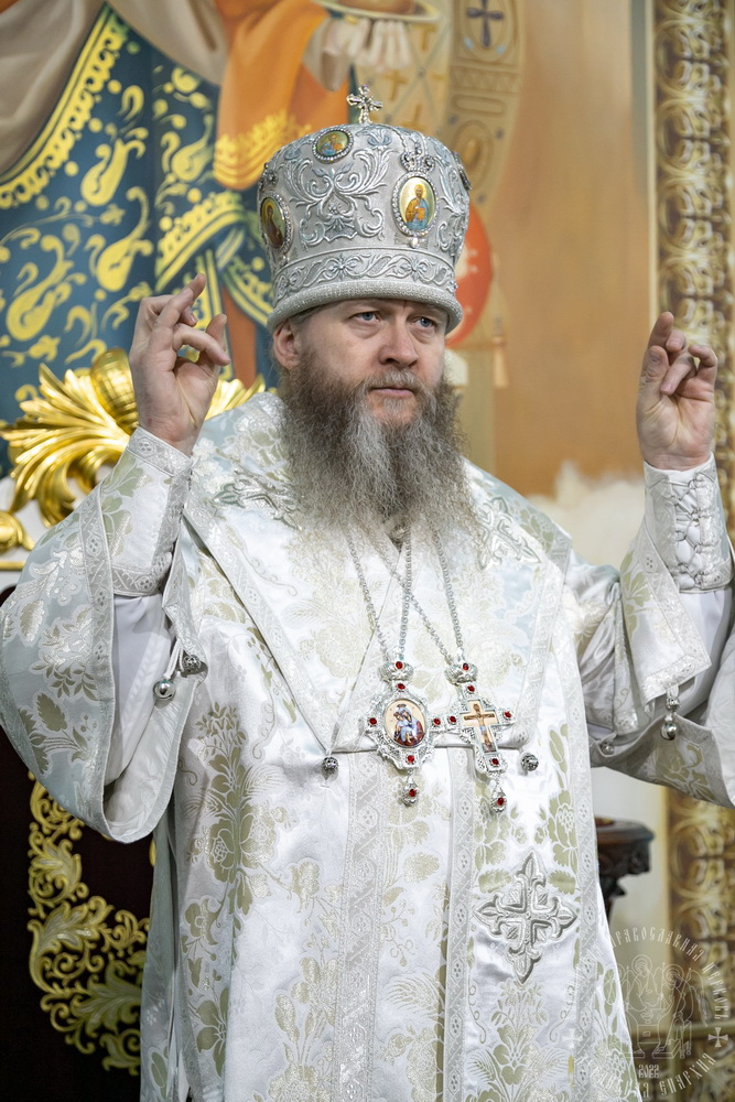 После сугубой ектении владыка вознес молитву о мире и умножении любви среди народа Отечества нашего и молитву «во время распространения вредоносного поветрия».