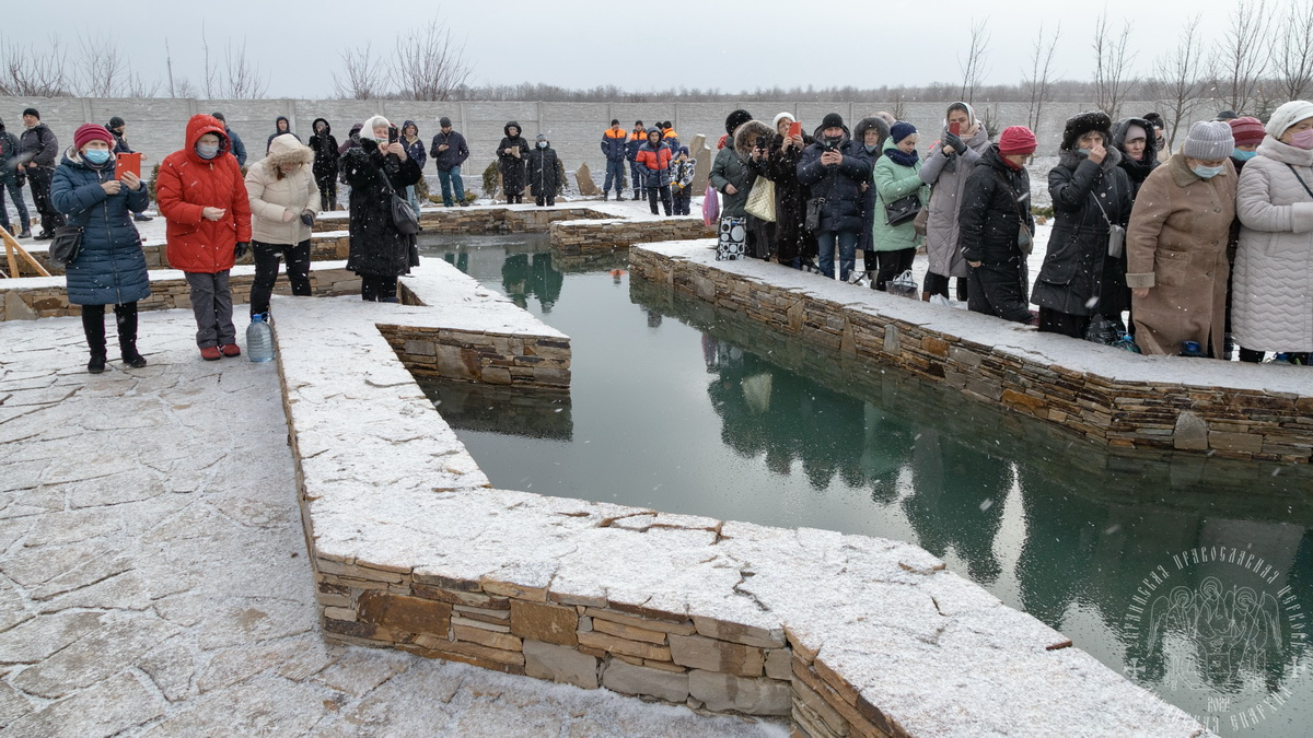 Купель имеет форму Креста, а для удобства желающих окунуться, были оборудованы специальные помещения, где можно согреться и переодеться.