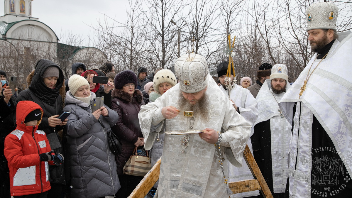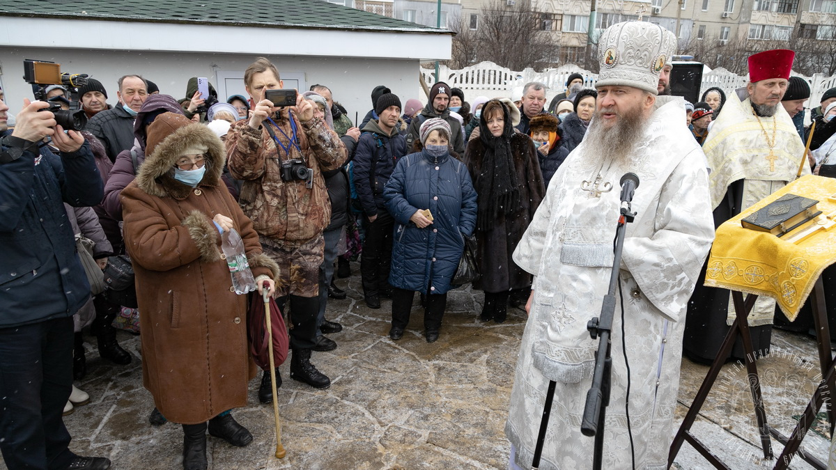 По окончании Литургии, в кафедральном соборе, владыка совершил чин Великого освящение воды на территории храма св. апостола Андрея Первозванного.