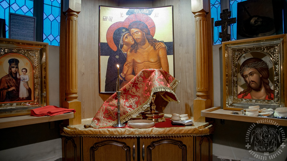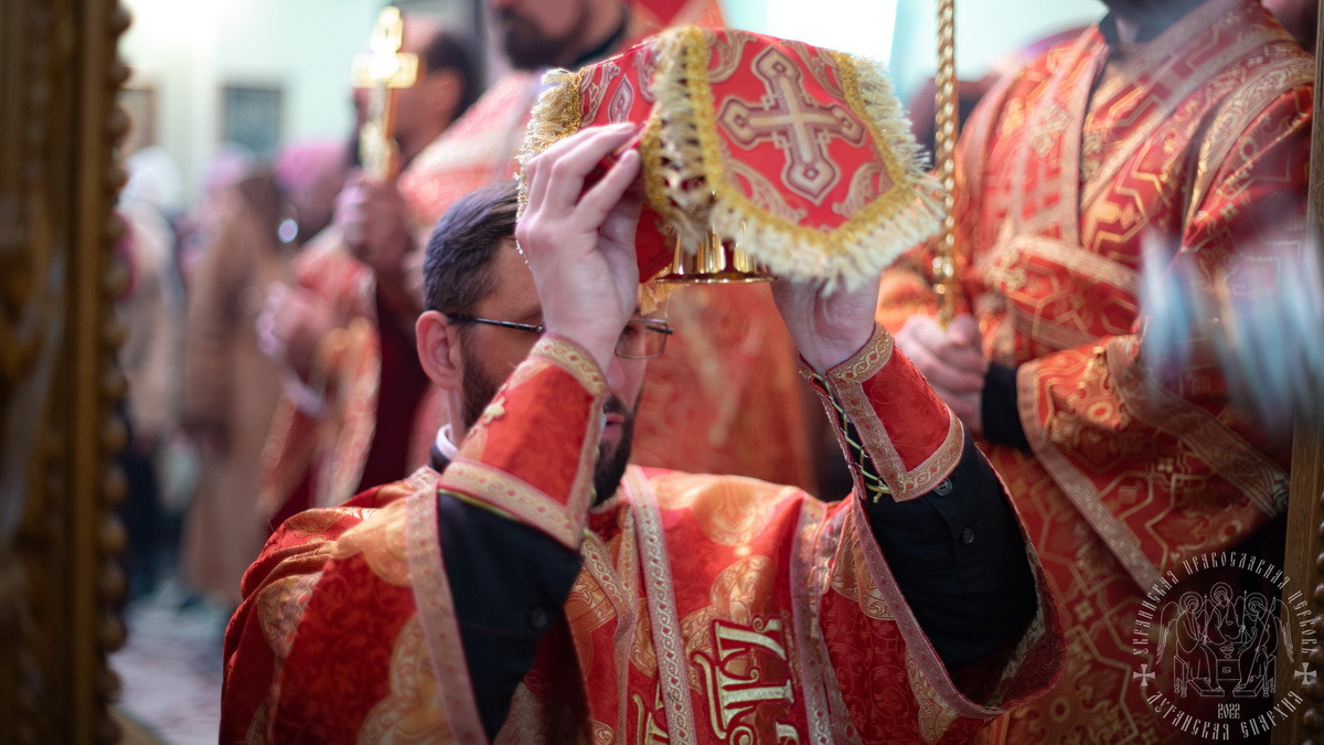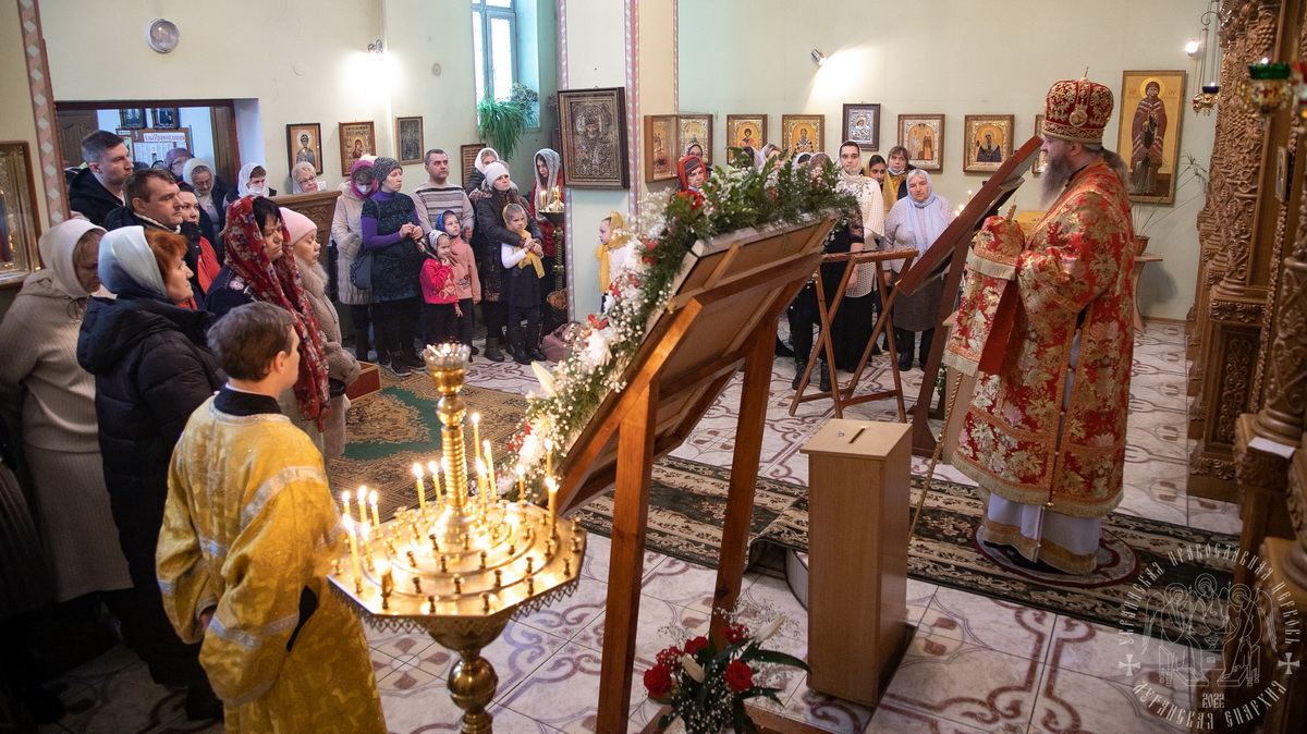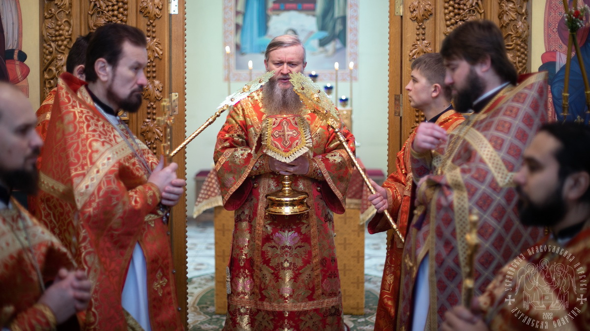 На сугубой ектении, во время богослужения, были провозглашены особые прошения, после которой владыка вознес молитву о мире в нашем Отечестве и молитву «во время распространения вредоносного поветрия».