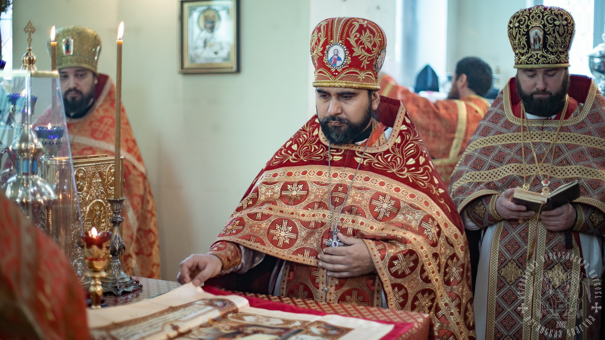 За Литургией Его Высокопреосвященству сослужил секретарь епархии архим. Макарий (Любавцев), настоятель храма прот. Георгий Денисов, а также приглашенное духовенство.